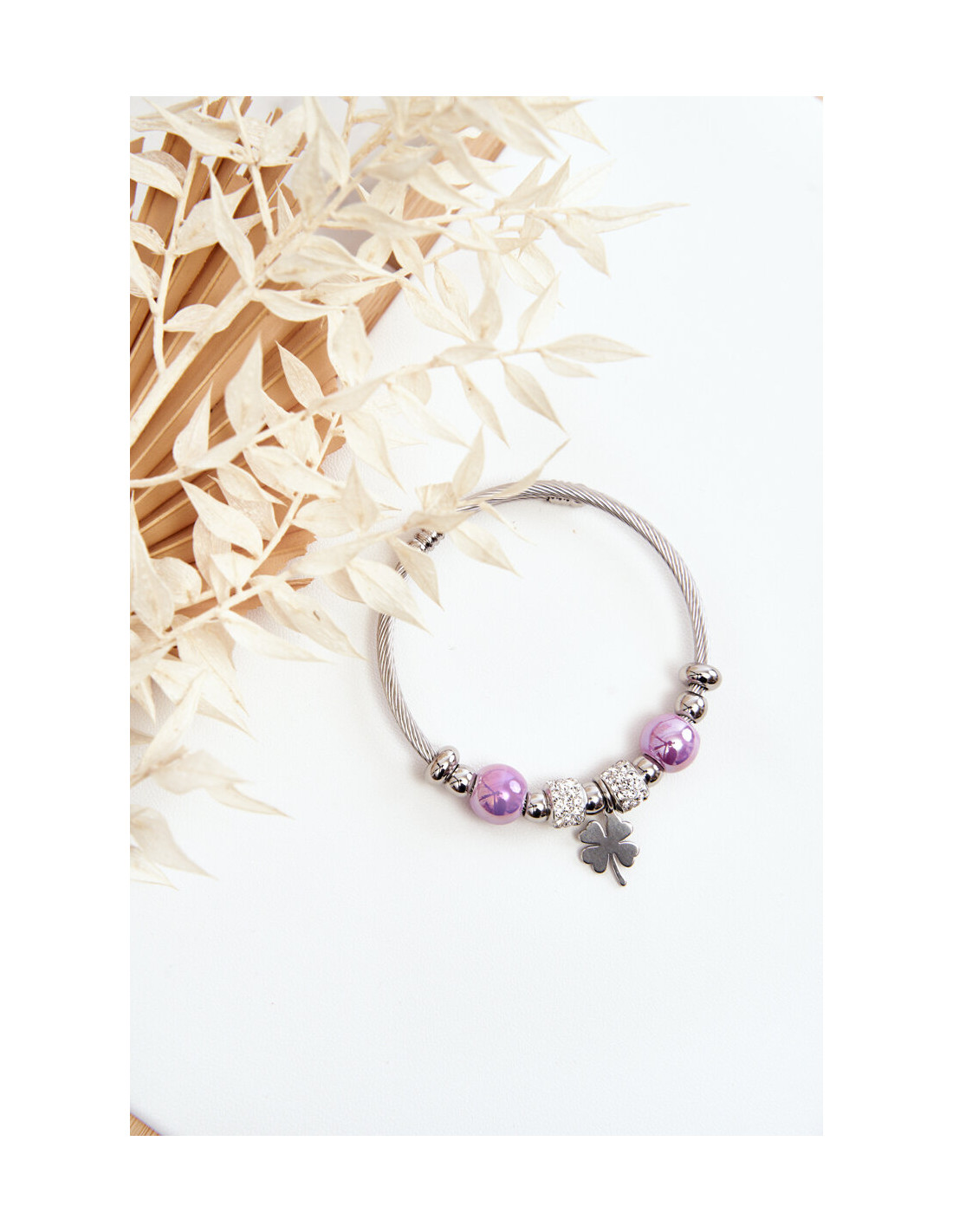 Plieninė apyrankė su sidabro-violetinės spalvos dobilais