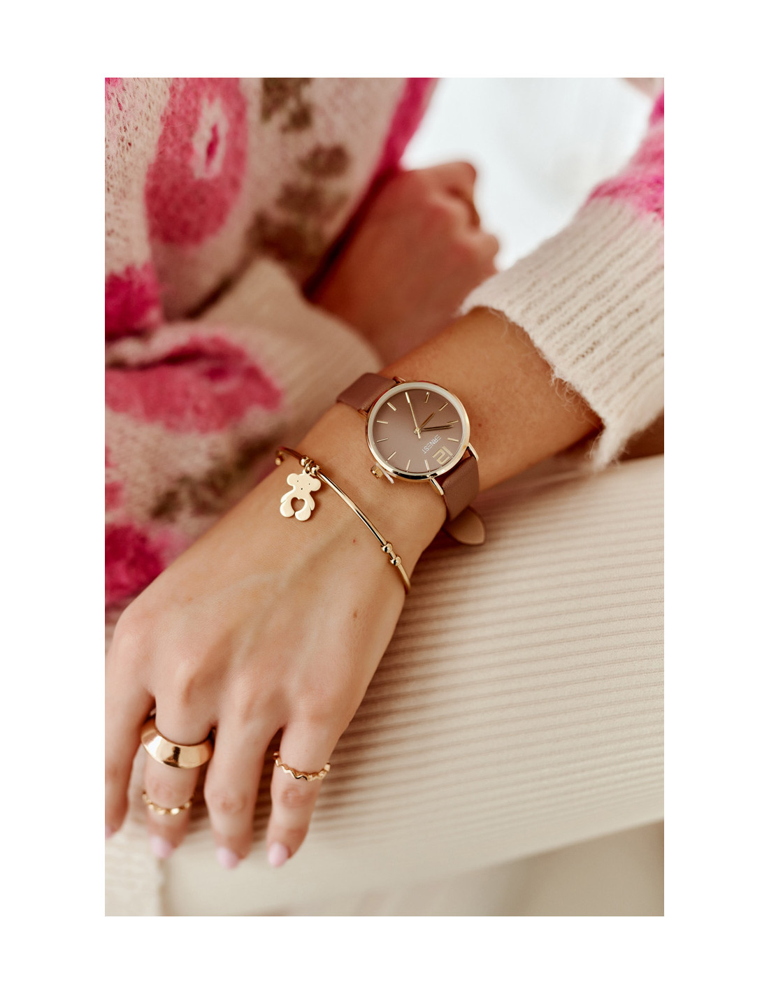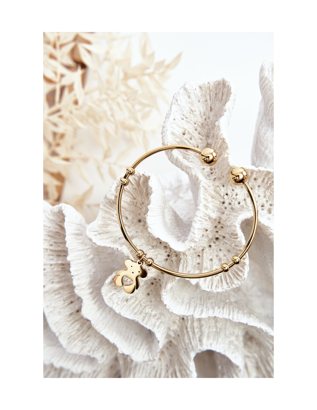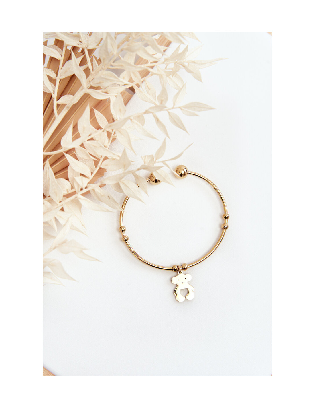 Moteriška prisegama plieninė meškiuko apyrankė, auksinė