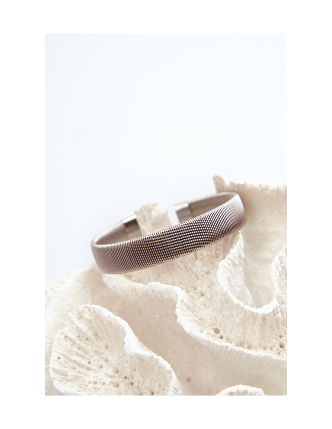Moteriška apyrankė iš nerūdijančio plieno. Dėl savo lankstumo jis puikiai priglunda prie riešo ir užtikrina patogumą dėvėti visą dieną. Tai tikrai papildys beveik bet kokį stilių!