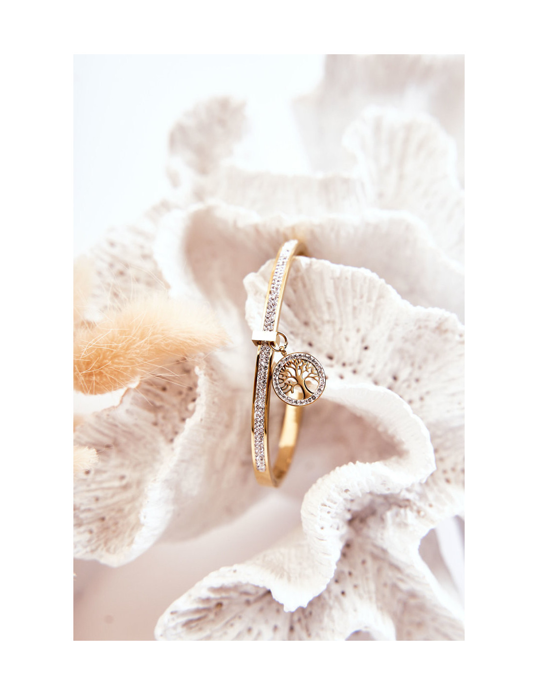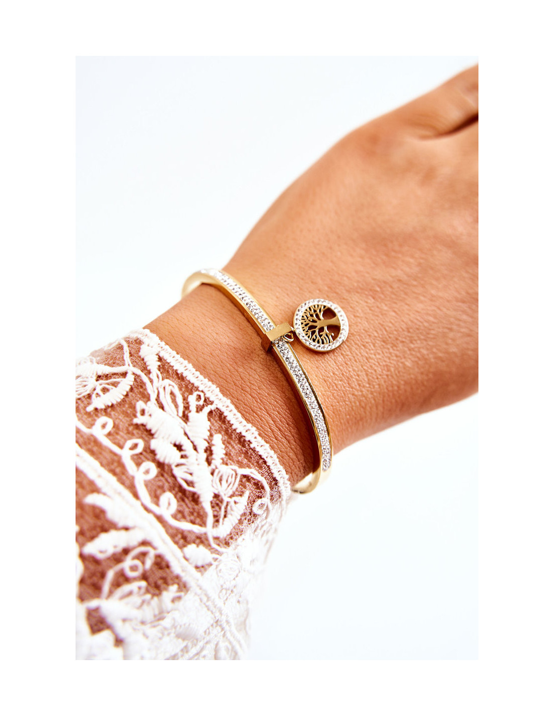 Peržiūrėkite visą mūsų papuošalų kolekciją ir išsirinkite mėgstamą aksesuarą. Pasiūlymas skirtas pačiai apyrankei.Plieninė apyrankė su kubiniu cirkonio medžiu gyvybės auksu