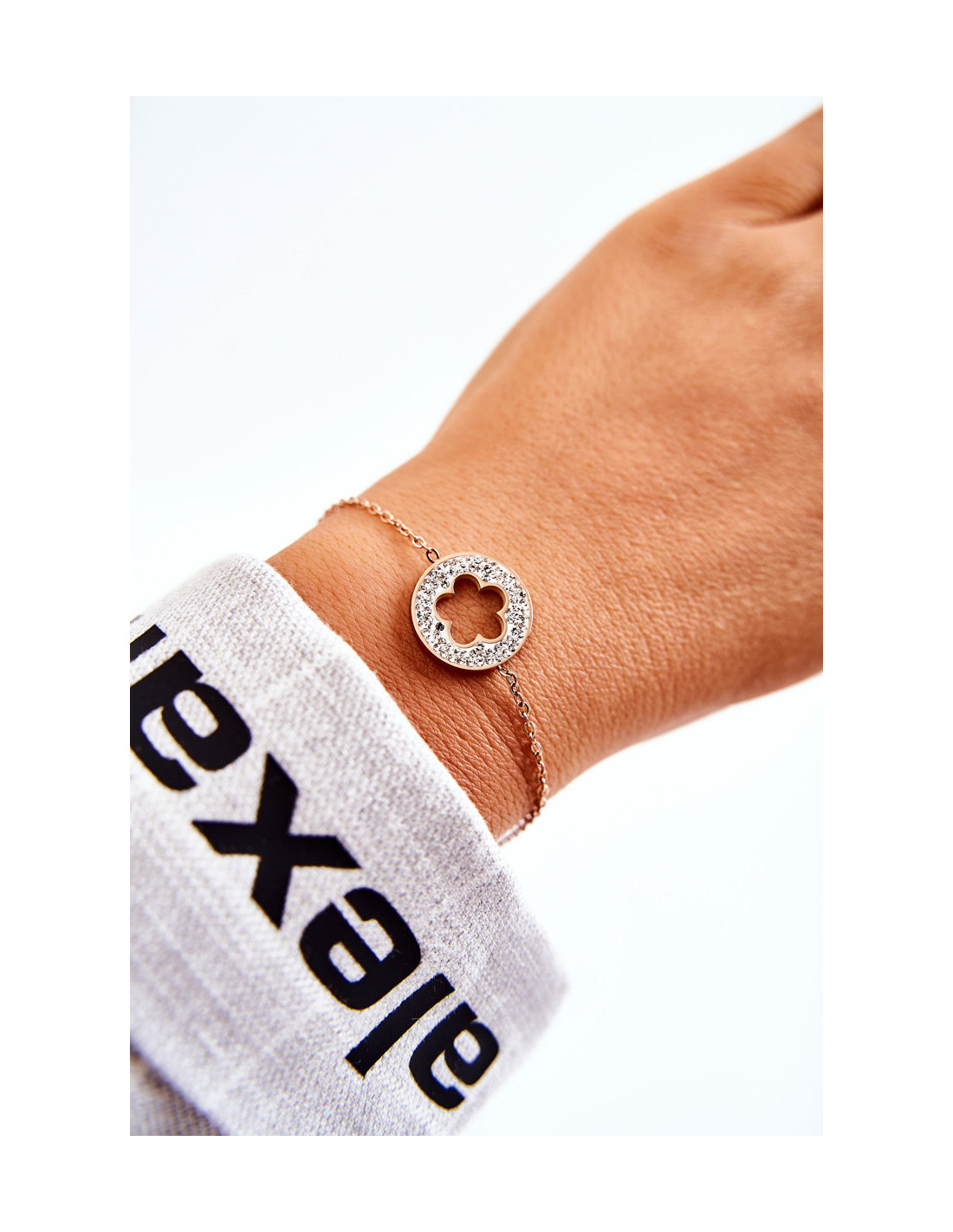 Graži apyrankė ant plonos grandinėlės kaip įžymybė. Jis buvo pagamintas iš nerūdijančio plieno. Jis reguliuojamas ilgiu. Apyrankės centre yra apskritimo formos ornamentas, kurio centre yra gėlė su kubiniais cirkoniais. Puikus priedas formuojant ne tik kasdienį, bet ir elegantiškesnį stilių. Šis modelis turi klasikinį užsegimą. Būtinai peržiūrėkite ir kitus mūsų pasiūlyme esančius papuošalų modelius!