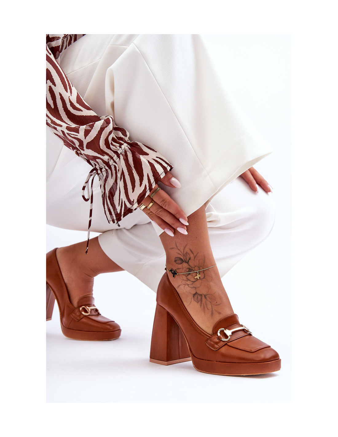 Šie madingi batai buvo pastatyti ant stambaus kulno – aukštesnio bloko ir subtilios platformos. Jie pagaminti iš eko odos. Be to, priekyje yra dirželis su ornamentu. Šie batai turi standžią nosies dangtelį. Minkštas vidpadis taip pat pagamintas iš eko odos. Šis modelis turėtų būti jūsų spintoje! Renkantis dydį, vadovaukitės dydžių lentele.