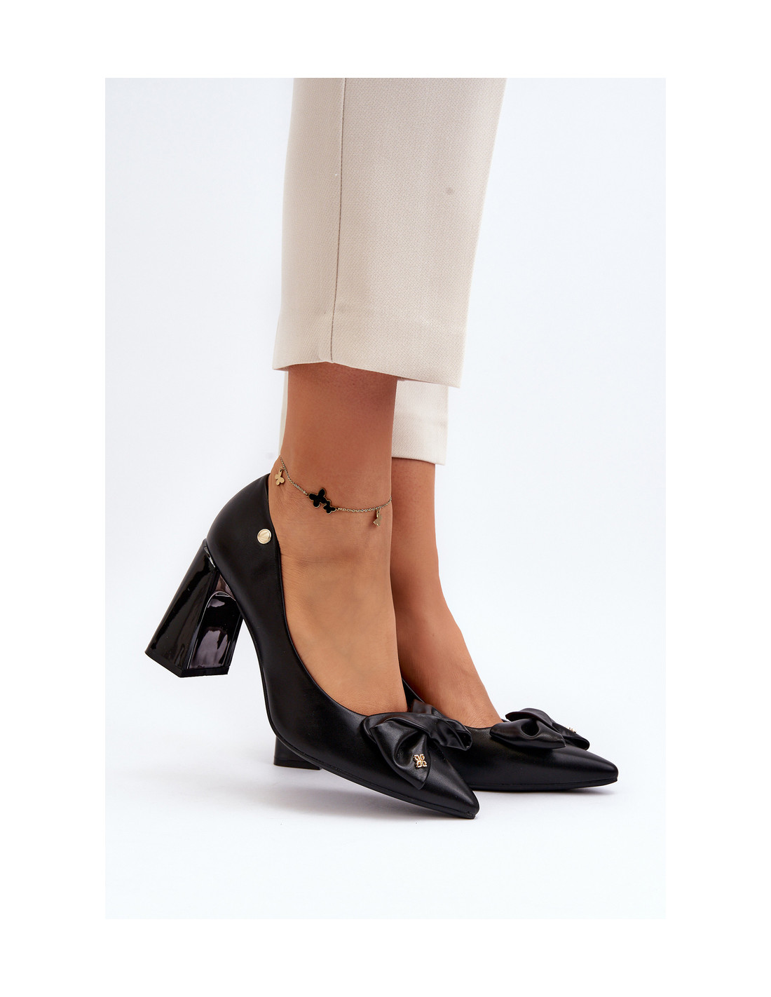 Elegantiški aukštakulniai su stabiliu blokiniu kulnu yra puikus pasirinkimas įvairioms progoms. Pagaminti atkreipiant dėmesį į detales, jie turi minkštą ir patogų įdėklą iš natūralios odos, kuris užtikrins komfortą net ir ilgai nešiojant. Smailūs kojų pirštai suteikia stiliaus, o subtili emblema viršutinės dalies šonuose suteikia jiems rafinuoto charakterio. Priekyje puoštas lankelis. Šis modelis puikiai papildys tiek kasdienį, tiek elegantišką stilių! Renkantis dydį, vadovaukitės dydžių lentele.