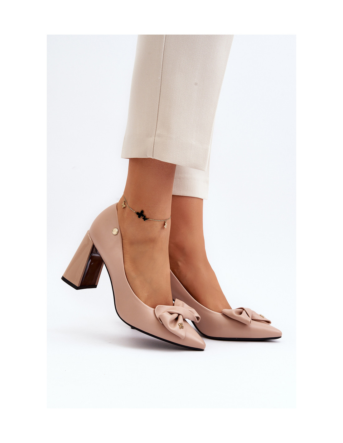 Elegantiški aukštakulniai su stabiliu blokiniu kulnu yra puikus pasirinkimas įvairioms progoms. Pagaminti atkreipiant dėmesį į detales, jie turi minkštą ir patogų įdėklą iš natūralios odos, kuris užtikrins komfortą net ir ilgai nešiojant. Smailūs kojų pirštai suteikia stiliaus, o subtili emblema viršutinės dalies šonuose suteikia jiems rafinuoto charakterio. Priekyje puoštas lankelis. Šis modelis puikiai papildys tiek kasdienį, tiek elegantišką stilių! Renkantis dydį, vadovaukitės dydžių lentele.