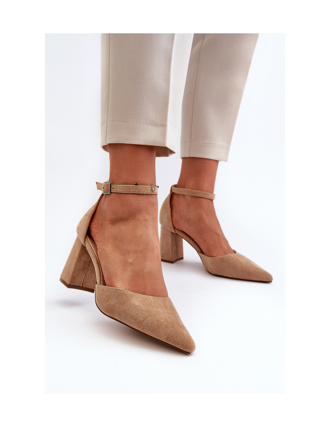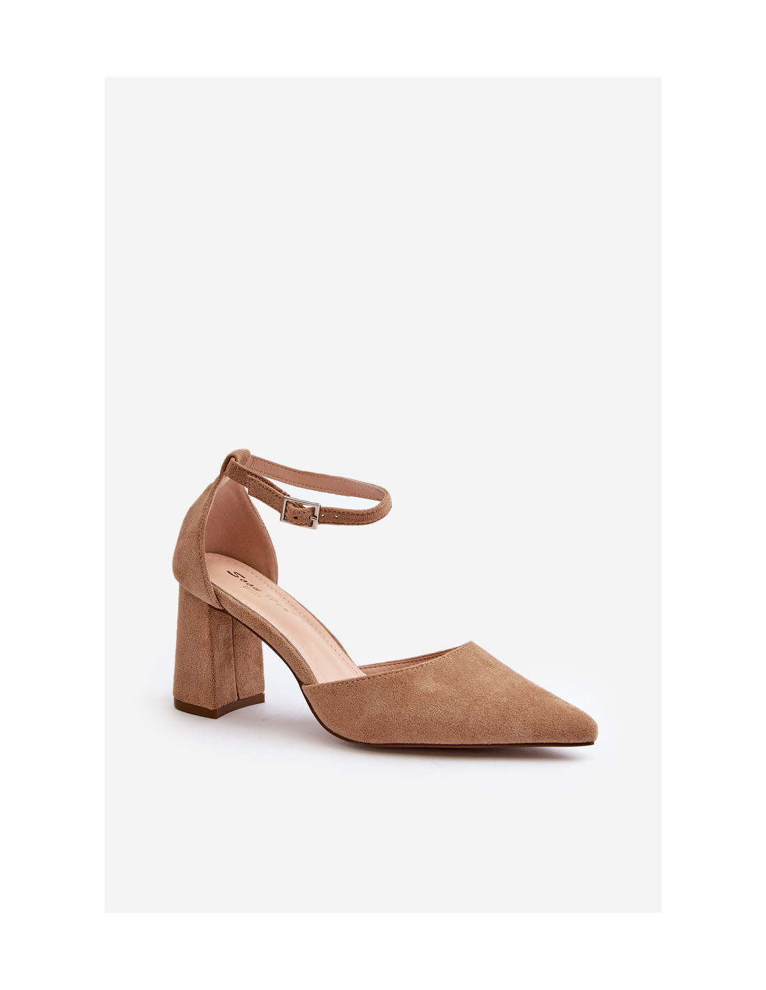 Stilingos moteriškos aukštakulnės stileto kulno formos. Pagaminta iš ekologiškos zomšos. Smailūs pirštai optiškai lieknins kojas, o užsegimas reguliuojamu dirželiu su sagtimi užtikrins tobulą prigludimą. Puikiai tinka vakarams ir įvairioms šeimos šventėms! Renkantis dydį, vadovaukitės dydžių lentele