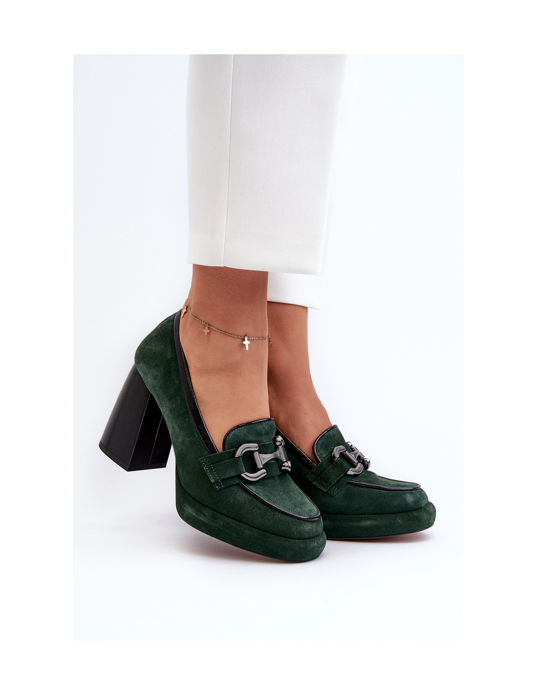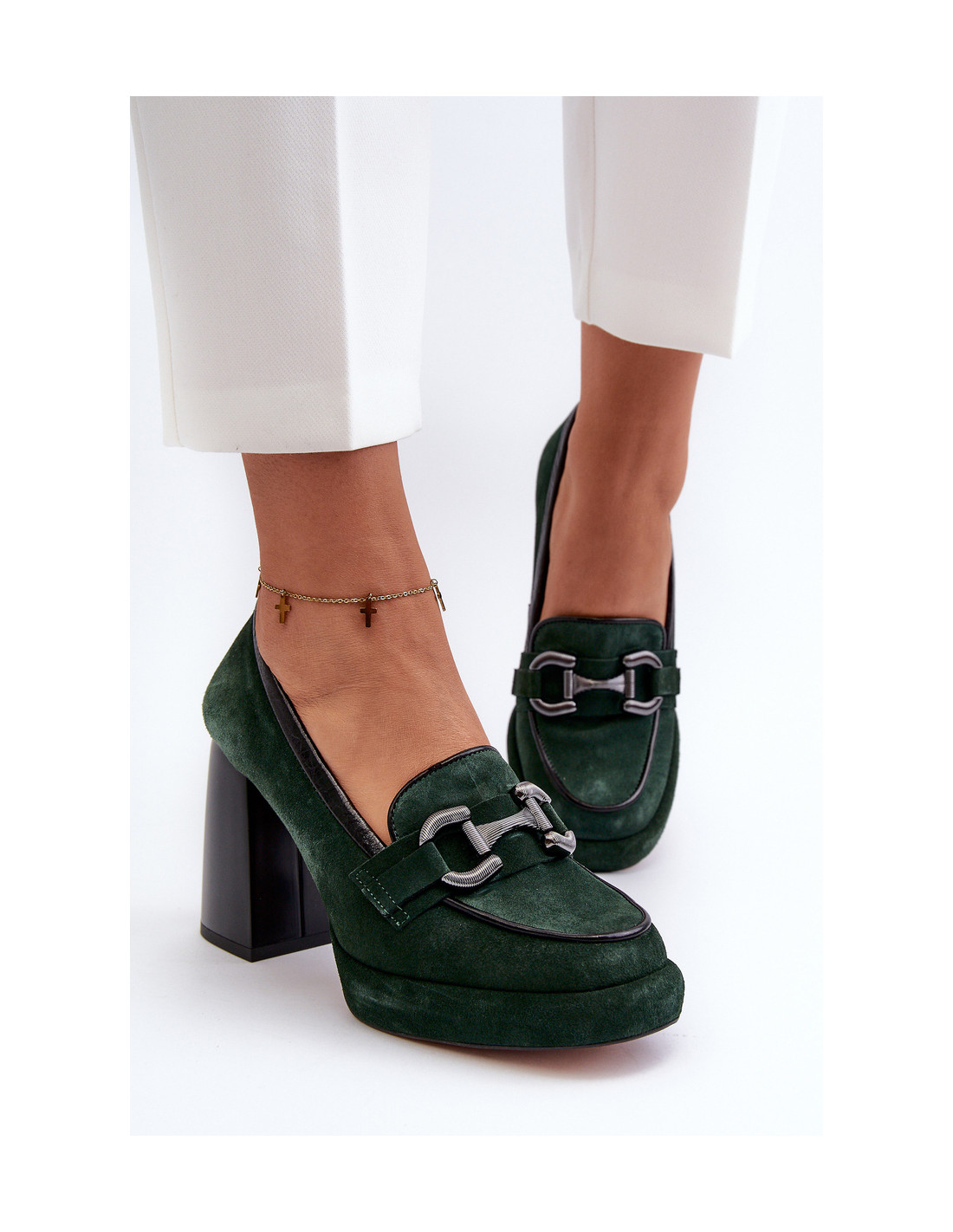 Moteriškos aukštakulniai pagamintos iš aukštos kokybės natūralios odos. Ant platformos ir masyvaus blokinio kulno. Minkštas, odinis vidpadis užtikrina komfortą naudojimo metu. Suapvalinti kojų pirštai. Sutvirtintas kulnas. Plastikinė apdaila priekyje. Renkantis dydį, vadovaukitės dydžių lentele