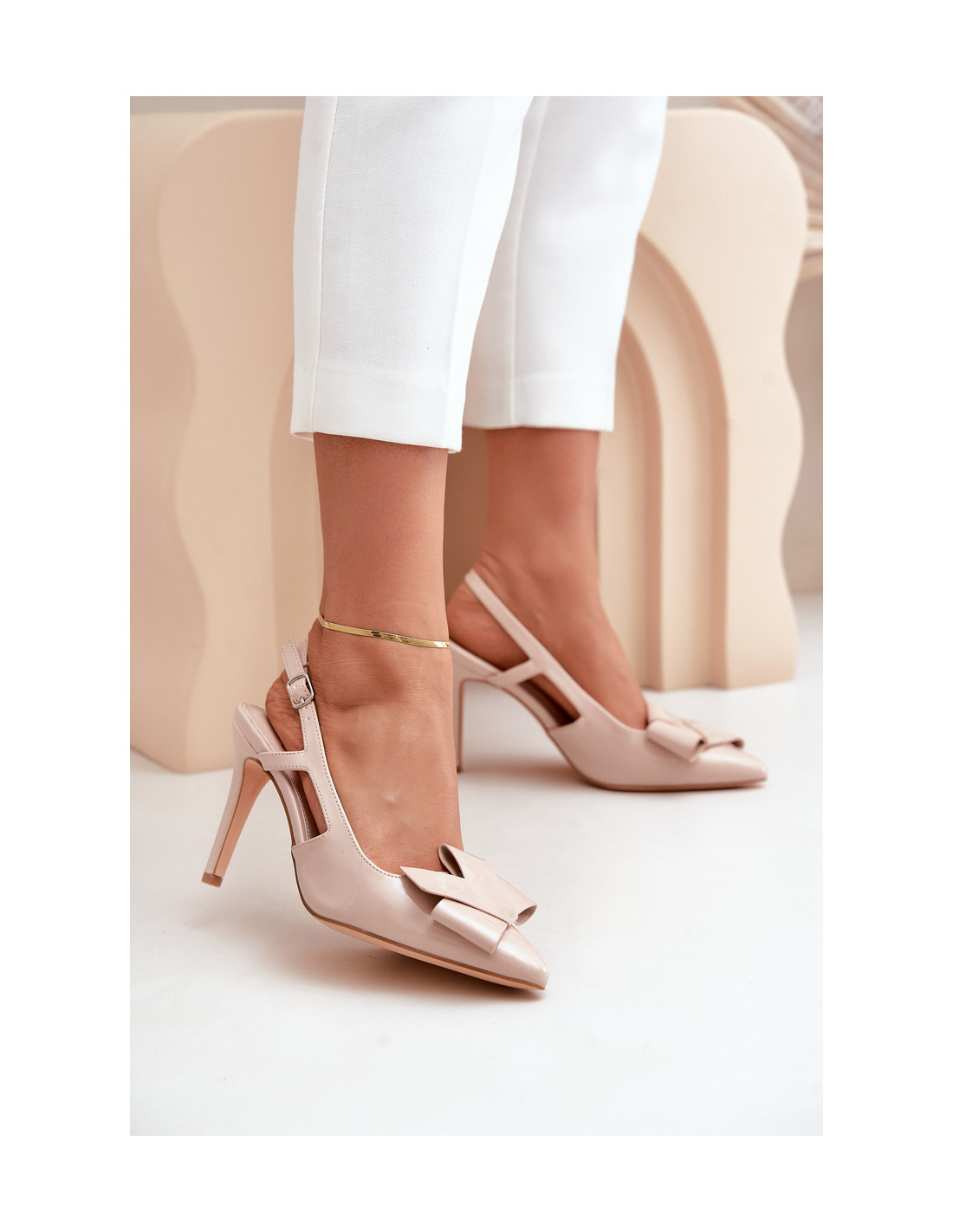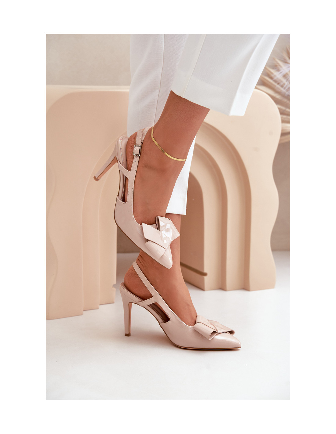 Elegantiški moteriški aukštakulniai iš lakinės eko odos – stilingas pasiūlymas ypatingoms progoms. Modeliui būdingi smailūs pirštai, kurie optiškai plonina kojas ir reguliuojamas dirželis su sagtimi, kuri užtikrina tobulą prigludimą. Bato priekį puošia įspūdinga dekoracija, suteikianti visumai savito charakterio. Puikiai tiks prie elegantiškų suknelių ar vakaro stiliaus! Renkantis dydį, vadovaukitės dydžių lentele.