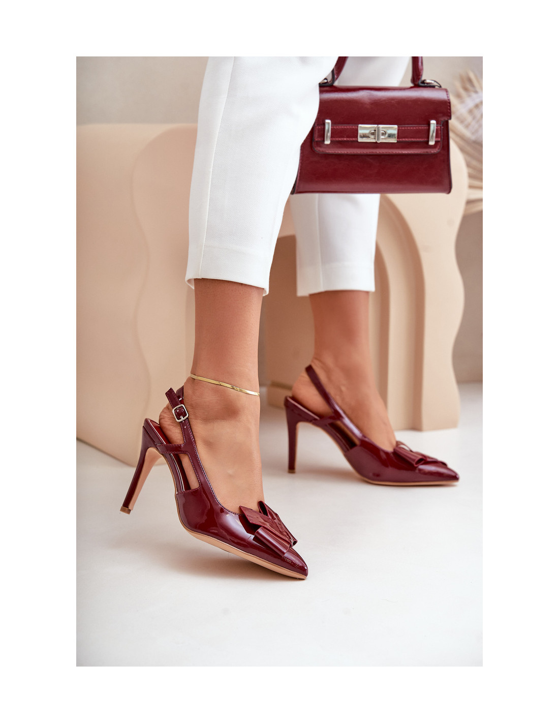 Elegantiški moteriški aukštakulniai iš lakinės eko odos – stilingas pasiūlymas ypatingoms progoms. Modeliui būdingi smailūs pirštai, kurie optiškai plonina kojas ir reguliuojamas dirželis su sagtimi, kuri užtikrina tobulą prigludimą. Bato priekį puošia įspūdinga dekoracija, suteikianti visumai savito charakterio. Puikiai tiks prie elegantiškų suknelių ar vakaro stiliaus! Renkantis dydį, vadovaukitės dydžių lentele.