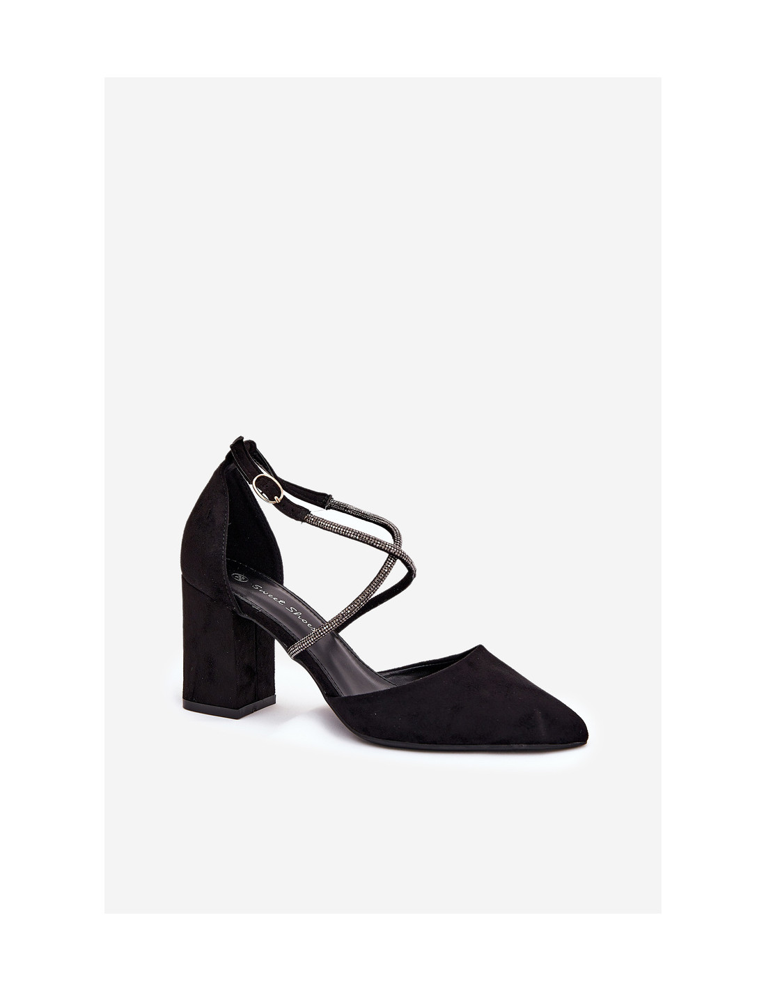Moteriškos aukštakulniai iš ekologiškos zomšos. Pastatykite ant blokinio kulno. Šis modelis išsiskiria susipynusiomis, cirkoniais dekoruotomis petnešėlėmis, kurios tikrai patraukia dėmesį ir suteikia nepakartojamo blizgesio. Smailus pirštas pabrėžia jų elegantišką išvaizdą, o užsegimas su sagtimi puikiai priglunda prie pėdos. Šie aukštakulniai bus puikus pasirinkimas ypatingoms progoms, bet kokiam stiliui pridedant prašmatnumo ir žavesio. Renkantis dydį, vadovaukitės dydžių lentele.