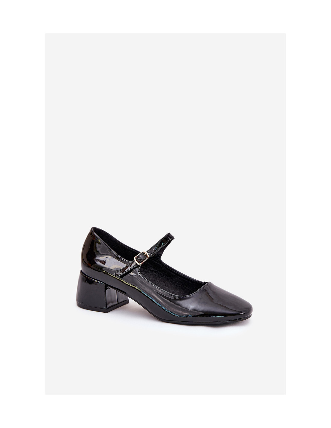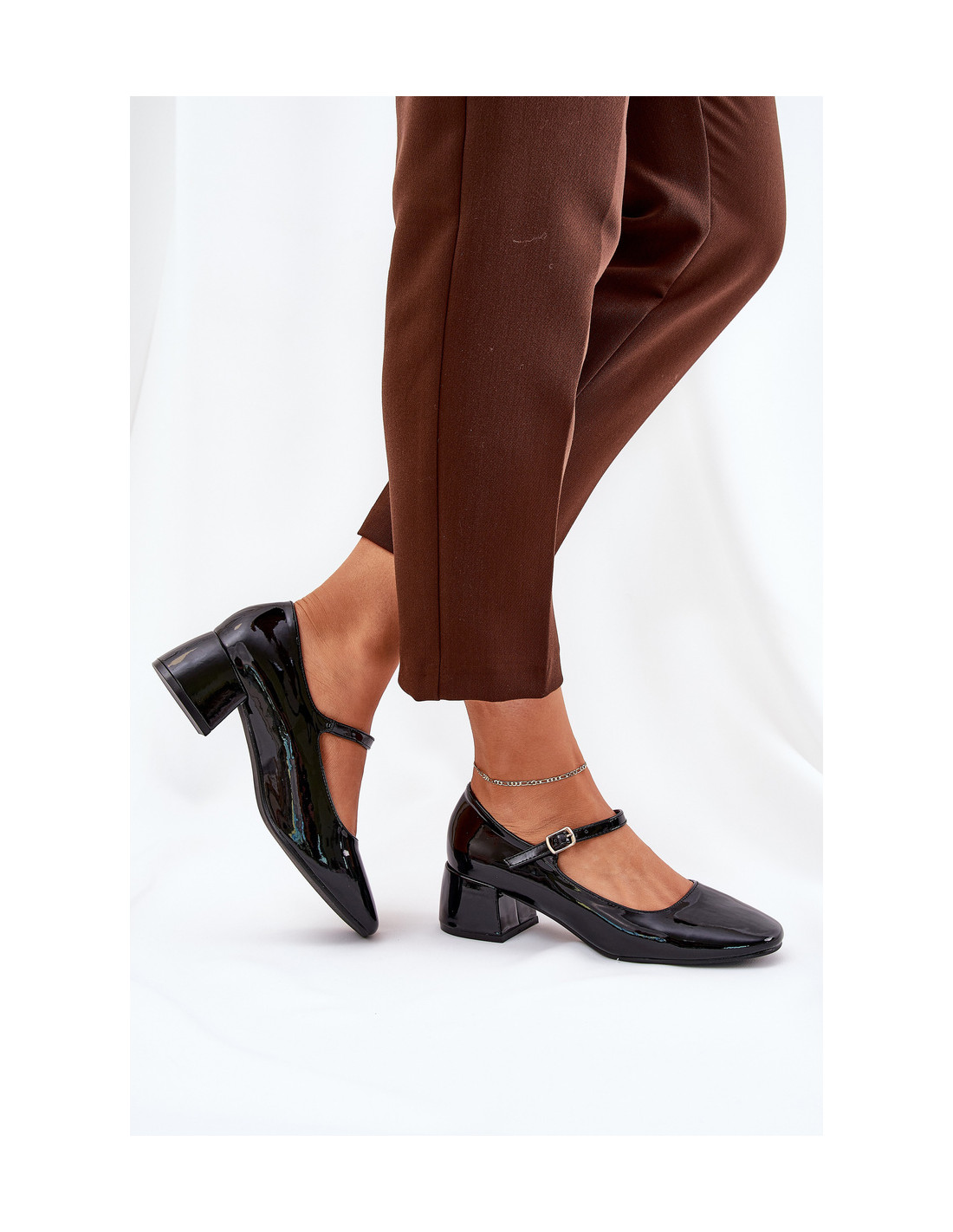 Lakinės odos siurbliai su dirželiu ir sagtimi Black Savilae