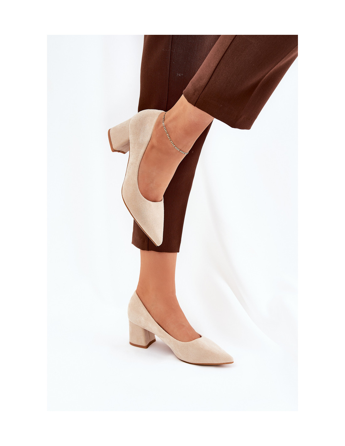 Moteriški smailūs kojų pirštai su kulnu smėlio spalvos merinete
