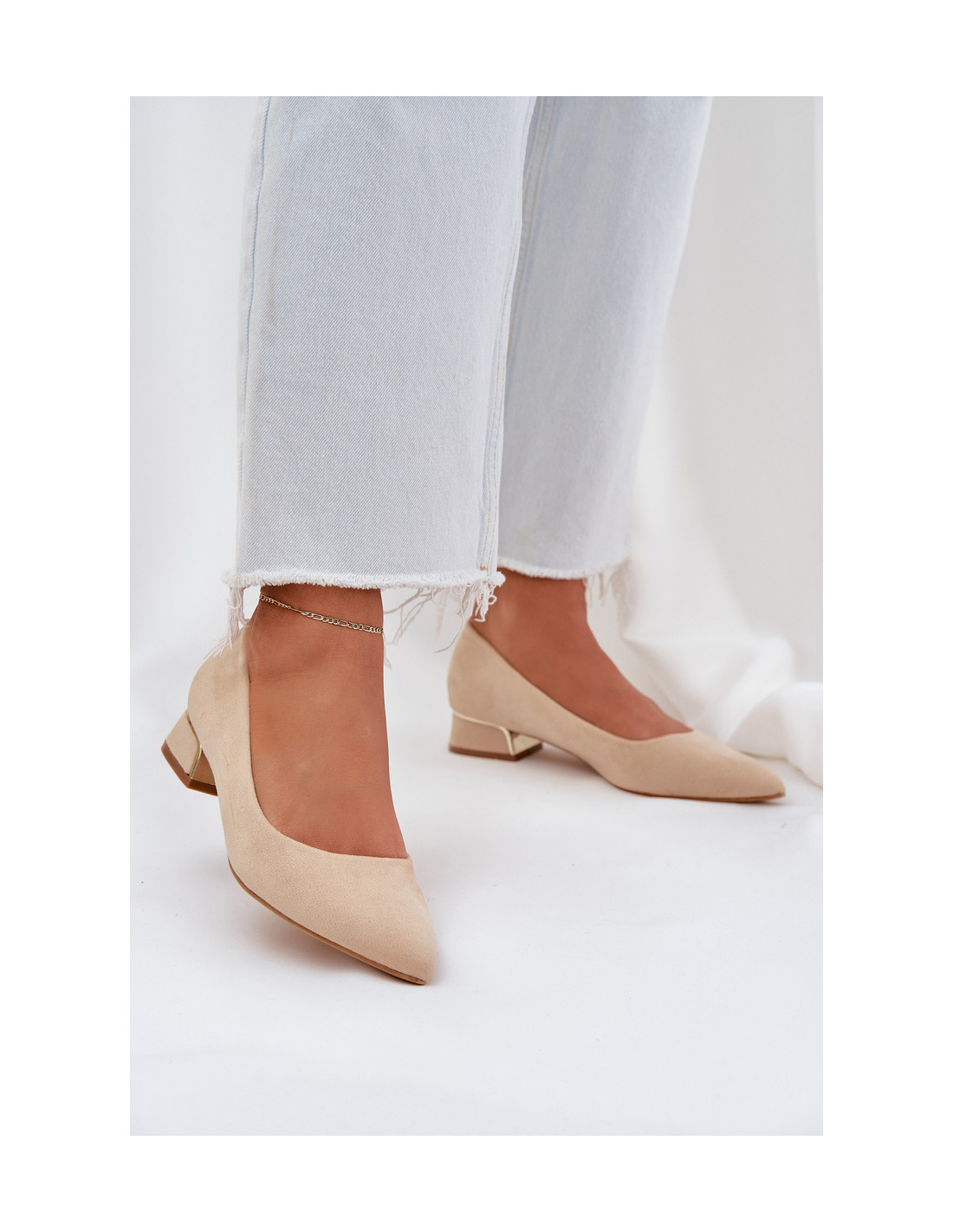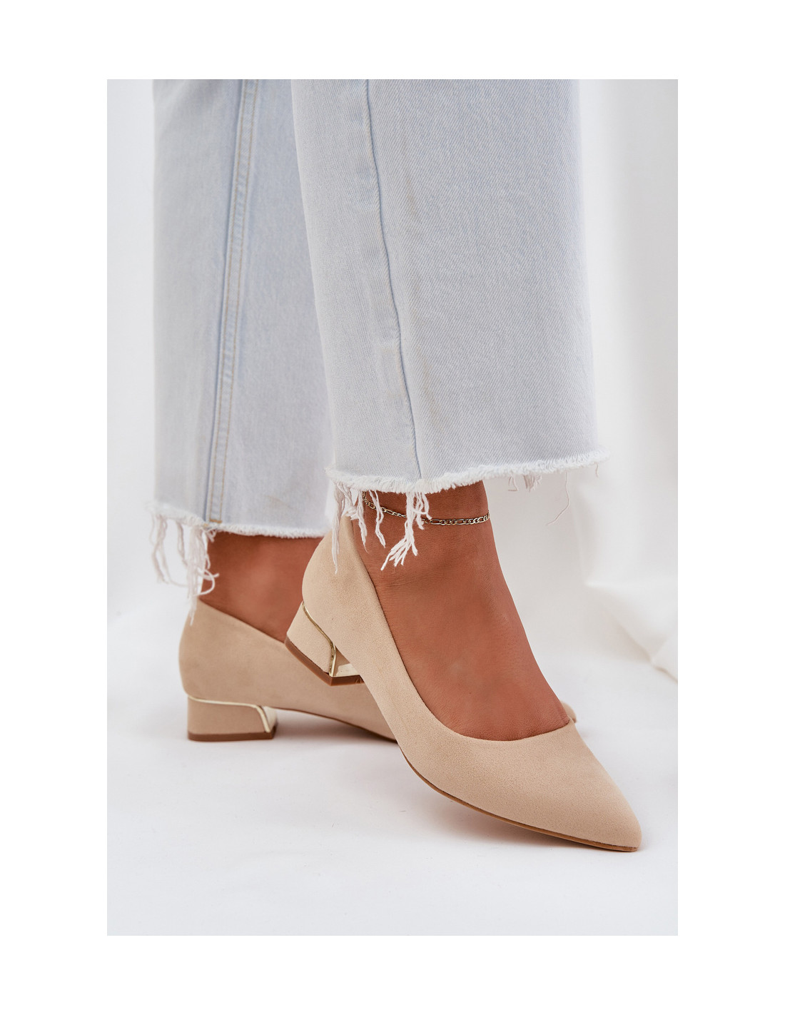 Šie ekologiškos zomšos bateliai su žemu kulnu yra elegantiškas pasirinkimas moterims, vertinančioms patogumą ir stilių. Smailios noselės suteikia rafinuotumo, o auksinis akcentas ant kulno suteikia subtilaus spindesio ir pagerina bendrą įvaizdį. Žemas kulnas užtikrina komfortą visą dieną, puikiai papildydamas tiek laisvalaikio, tiek elegantiškesnę aprangą. Tai puikus pasirinkimas bet kokiai progai, nes juose dera modernus dizainas ir klasikinė elegancija. Rinkdamiesi dydį, vadovaukitės dydžių lentele.