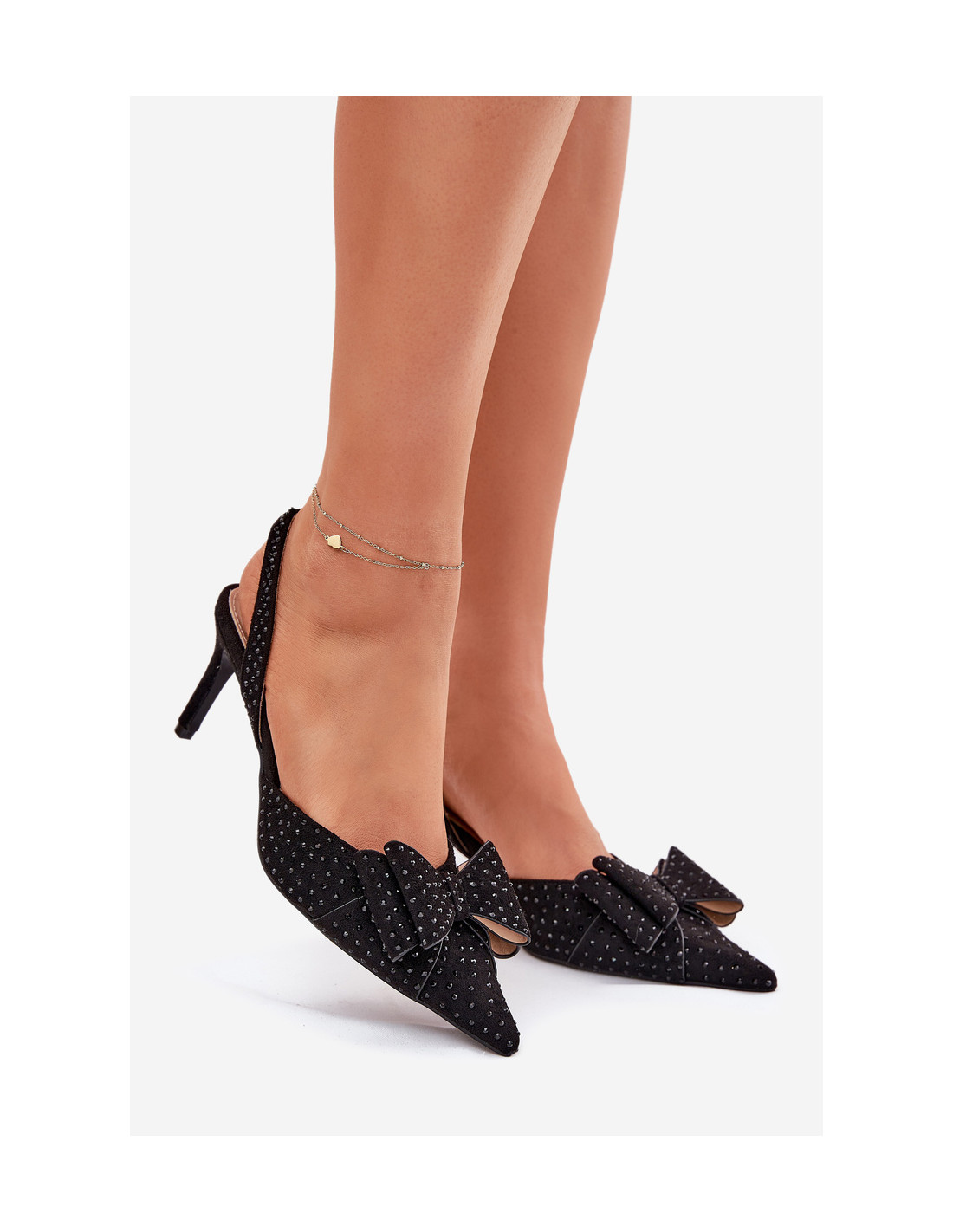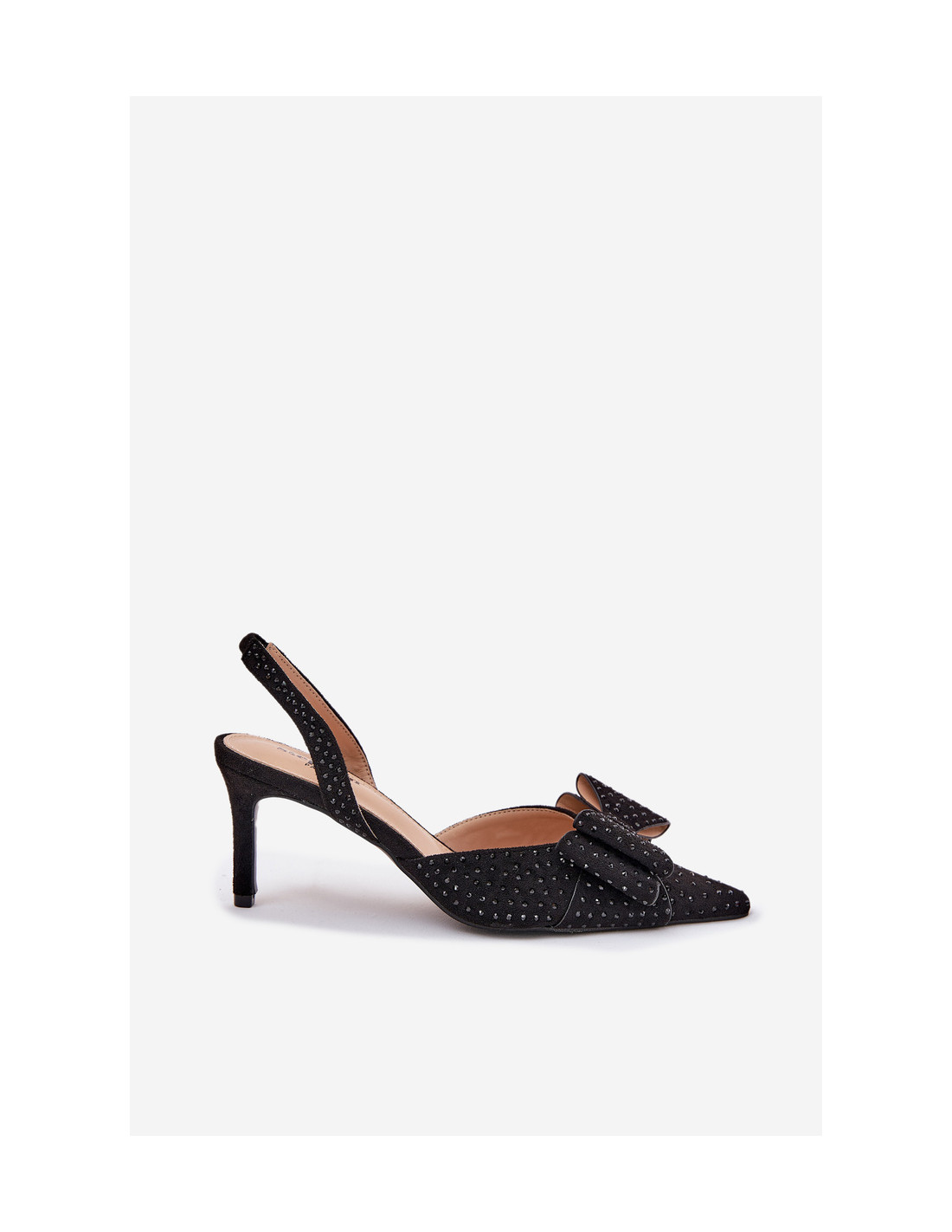 Juodi „Nilandriela“ puošti atviri bateliai su kaspinu