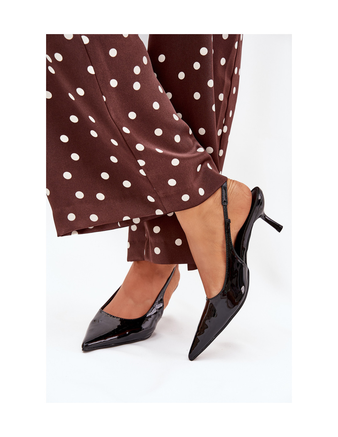 Šios moteriškos lakuotos odos bateliai smailiomis noselėmis ir atvirais kulnais – elegantiškas pasirinkimas, kuriame dera klasikinis stilius su modernumu. Smailios noselės pailgina kojas, sukurdamos lieknesnį siluetą. Atviras kulnas suteikia lengvumo, todėl šie bateliai idealiai tinka vakaro pasilinksminimams ir ypatingoms progoms. Renkantis dydį, vadovaukitės dydžių lentele.