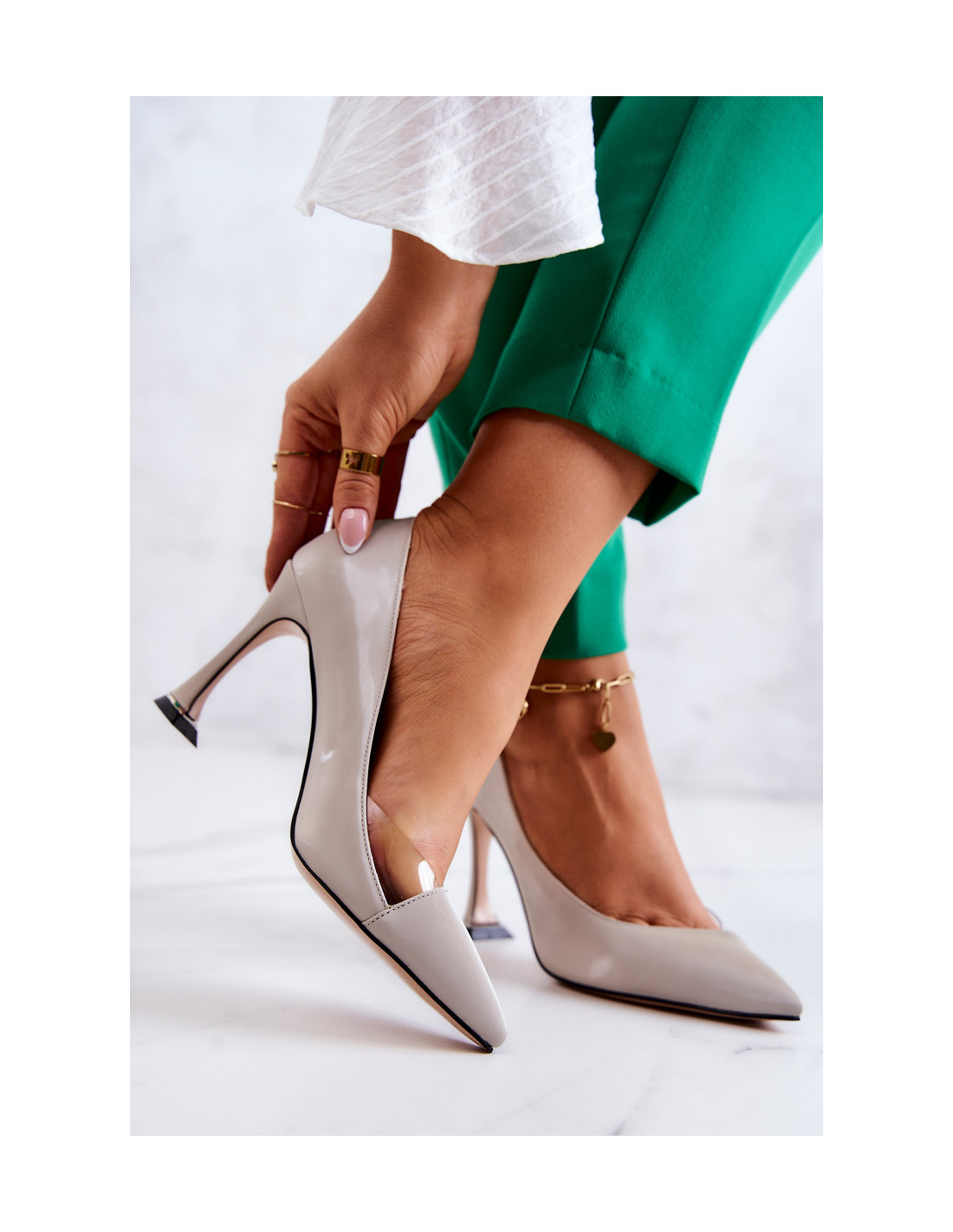 Madingi odiniai stiletai šviesiai pilki Tamira
