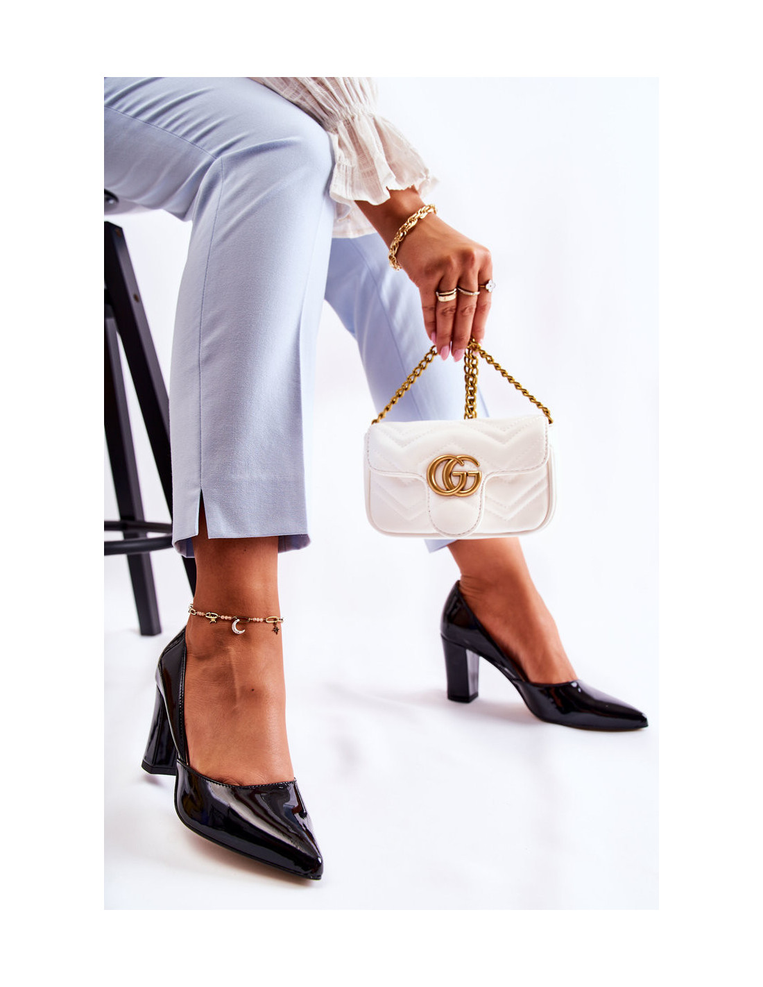 Madingi lakuoti aukštakulniai ant juostos Juoda emocija