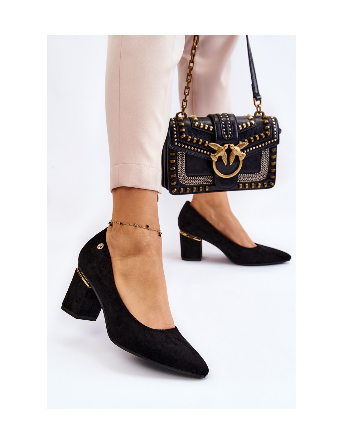 Klasikiniai zomšiniai aukštakulniai aukštakulniai su papuošimais Black Derren
