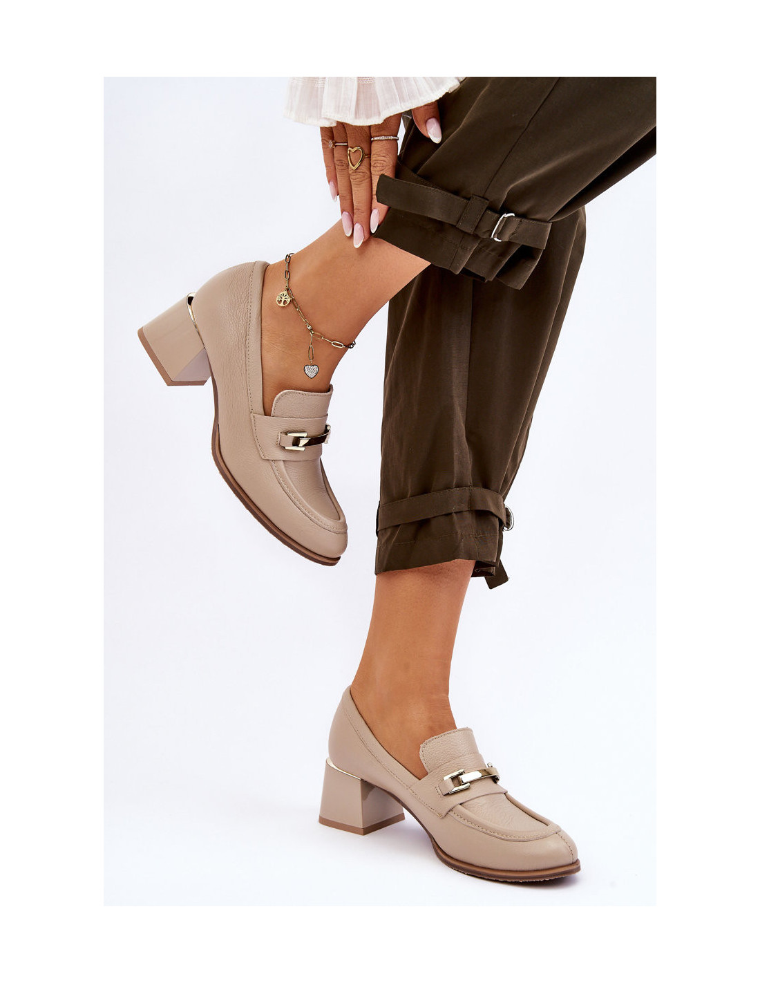Patogūs odiniai aukštakulniai smėlio spalvos Damira