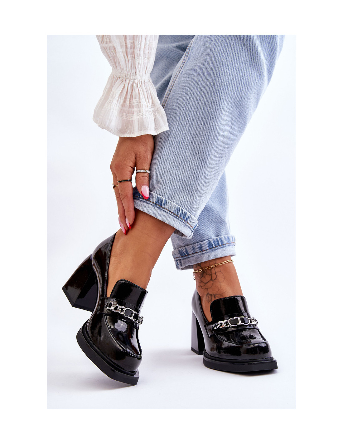 Patogūs aukštakulniai kiekvienai moteriai, kuri vertina komfortą ir grožį kiekviename žingsnyje! Šie madingi aukštakulniai pagaminti iš eko odos ir dekoruoti grandinėle bei emblema. Jie buvo pastatyti ant subtilios platformos ir masyvaus kulno bloko pavidalu. Be to, jie turi standintą kulną. Šį modelį tikrai turėtumėte turėti savo garderobe! Rinkdamiesi dydį žiūrėkite dydžių lentelę.
