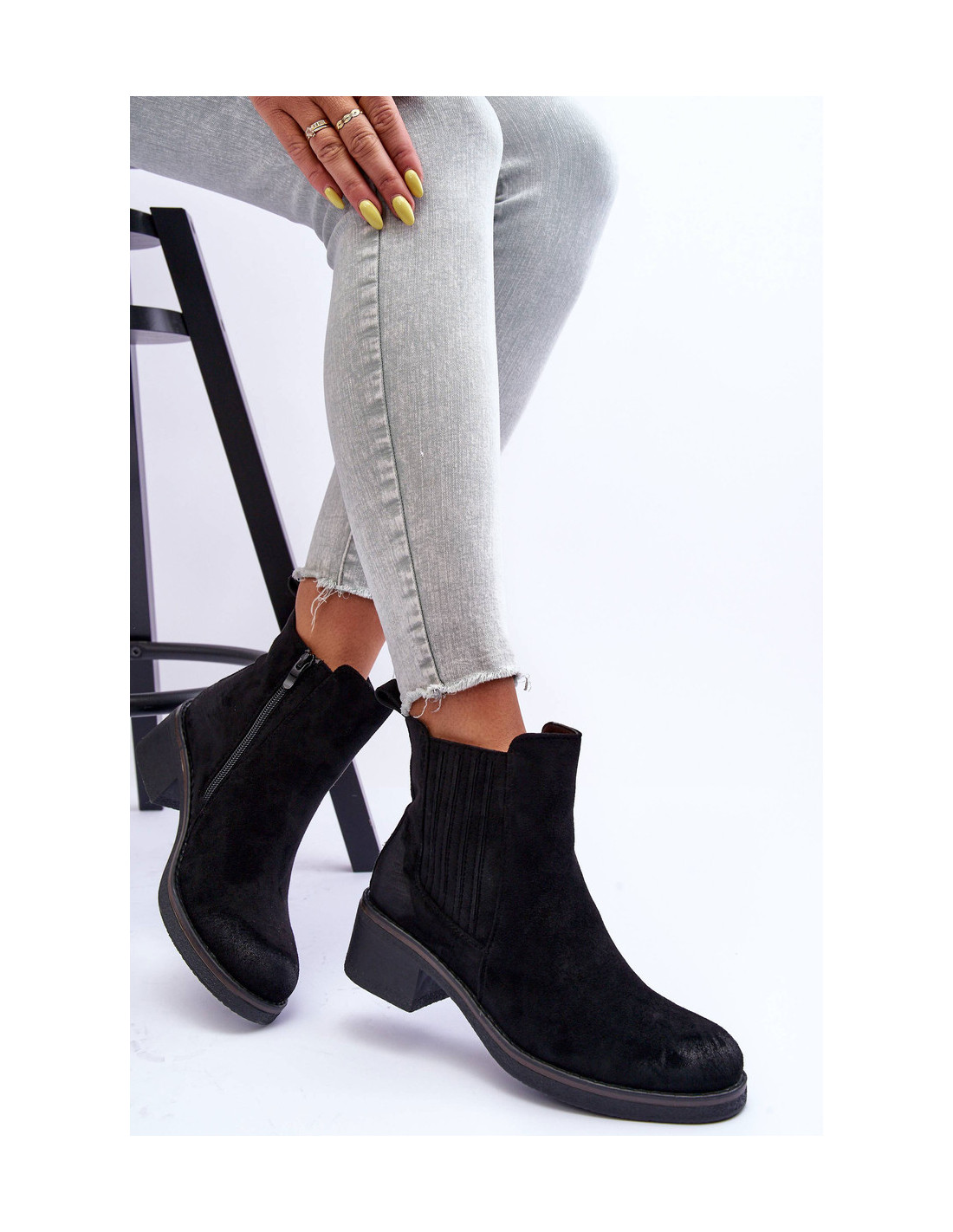 Moteriški klasikiniai zomšiniai batai, juodi Metanassa