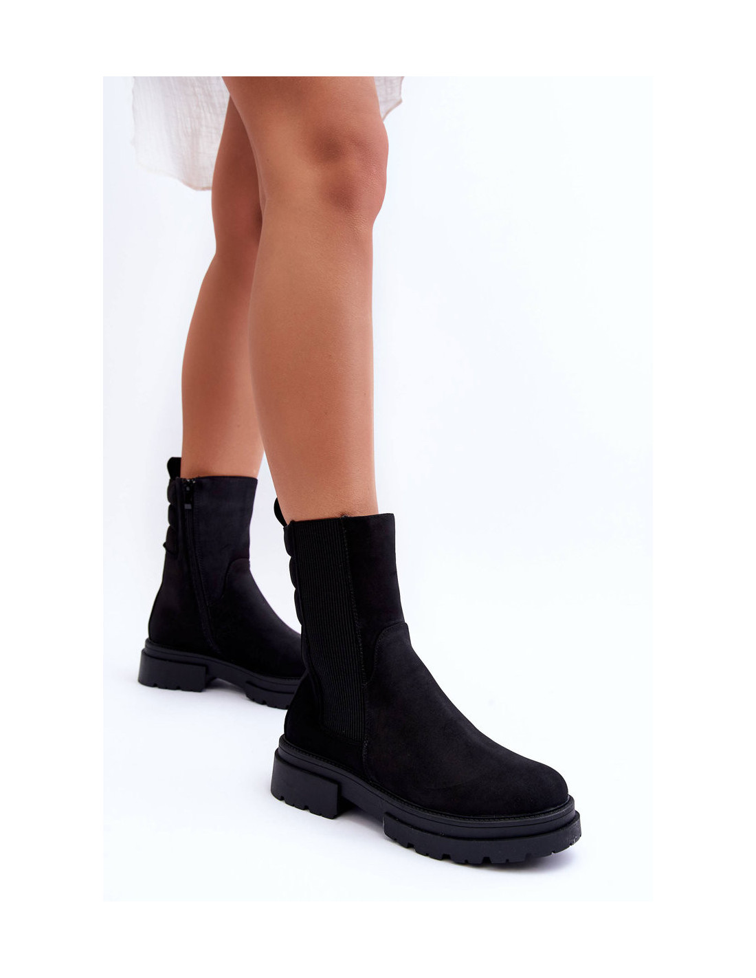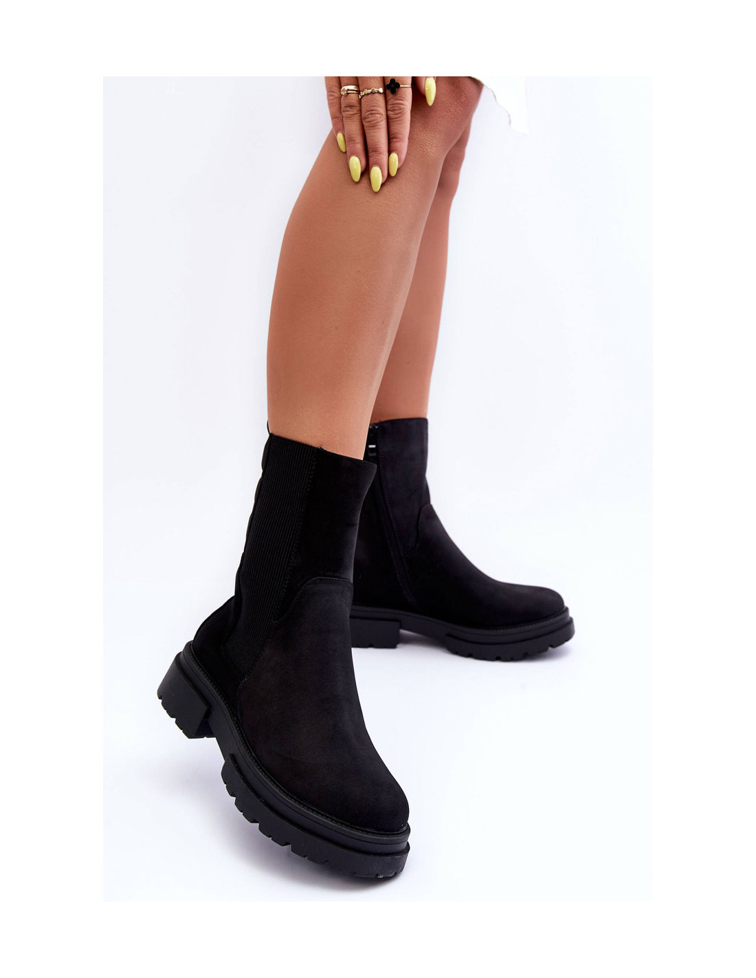 Batai buvo pagaminti iš nubuko. Nustatyta ant masyvios platformos ir plokščio kulno. Antgalis suapvalintas. Elastingas, aukštas batviršis leis tinkamai priglusti prie avalynės. Užsegama užtrauktuku vidinėje bato pusėje. Šis modelis taip pat turi sustiprintą pirštų dangtelį. Izoliuotas su batų pamušalu. Renkantis dydį, vadovaukitės dydžių lentele.