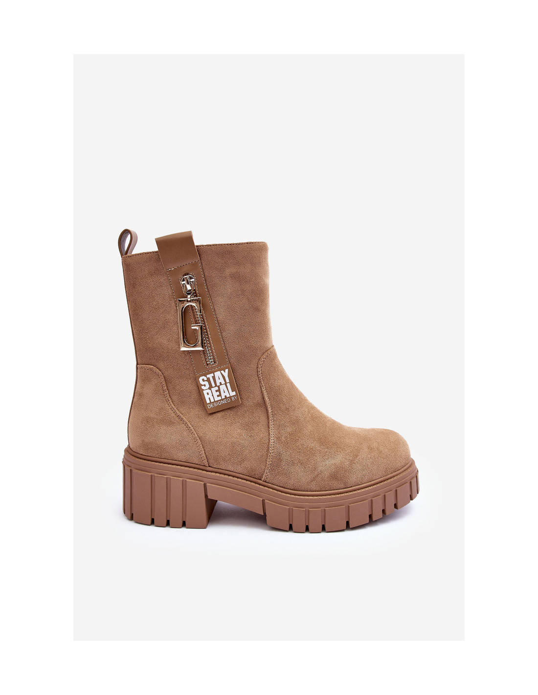 Madingi moteriški kulkšnies batai aukštesniu batviršiu, pagaminti iš ekologiškos zomšos. Viduje užsegamas užtrauktuku. Nustatykite ant plokščio kulno ir platformos su grioveliais. Viršus dekoruotas nuimamu dirželiu su grandinėle. Puikus modelis daugeliui stilizacijų! Renkantis dydį, žiūrėkite dydžių lentelę.
