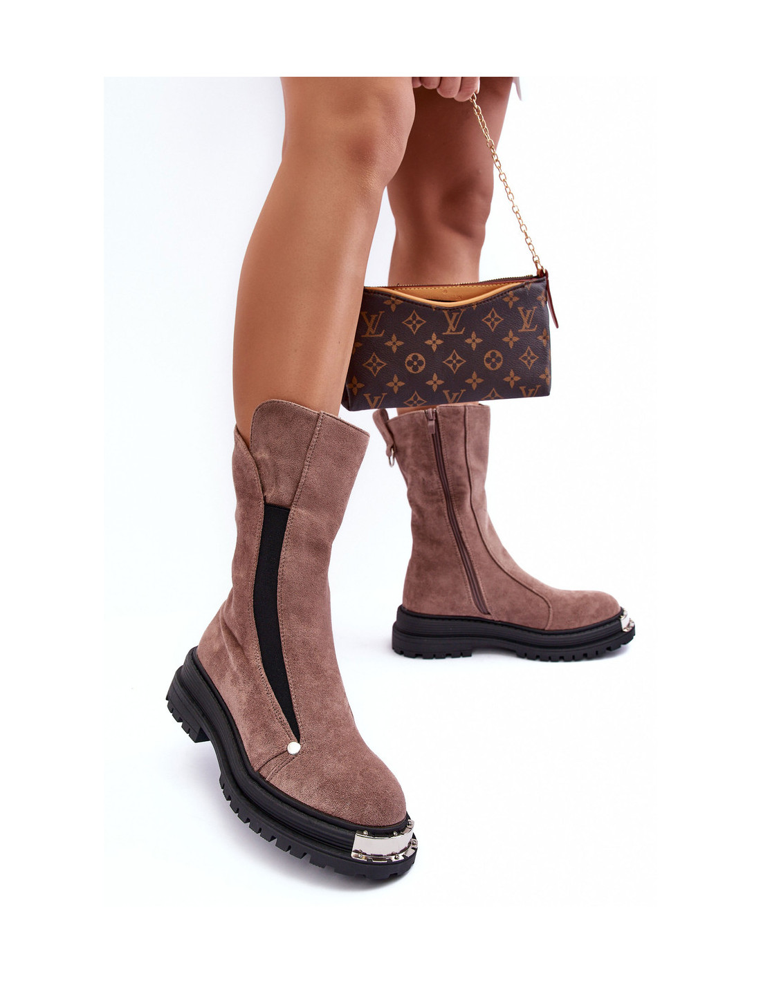 Moteriški batai iš ekologiškos zomšos. Pastatykite ant plokščio, stabilaus kulno ir platformos. Vidus apšiltintas batų antklode. Užsegimas užtrauktuku viršutinės dalies šone. Pirštų dėžutė sutvirtinta. Renkantis dydį, žiūrėkite dydžių lentelę.