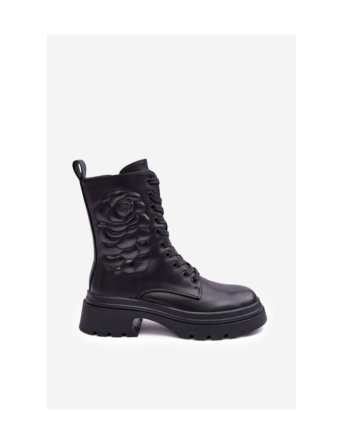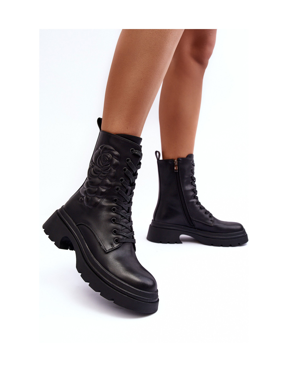 Moteriški batai ant plokščio, stabilaus kulno ir platformos. Pagaminta iš eko odos. Užsegamas užtrauktuku ir papildomai suvarstomas. Viršuje įspaudas. Suapvalinti kojų pirštai. Vidus apšiltintas batų pamušalu. Minkštas vidpadis leis patogiai naudotis avalyne. Sustingęs skaitiklis. Šį modelį galite naudoti daugeliui rudens-žiemos stilių! Rinkdamiesi dydį, vadovaukitės dydžių lentele.