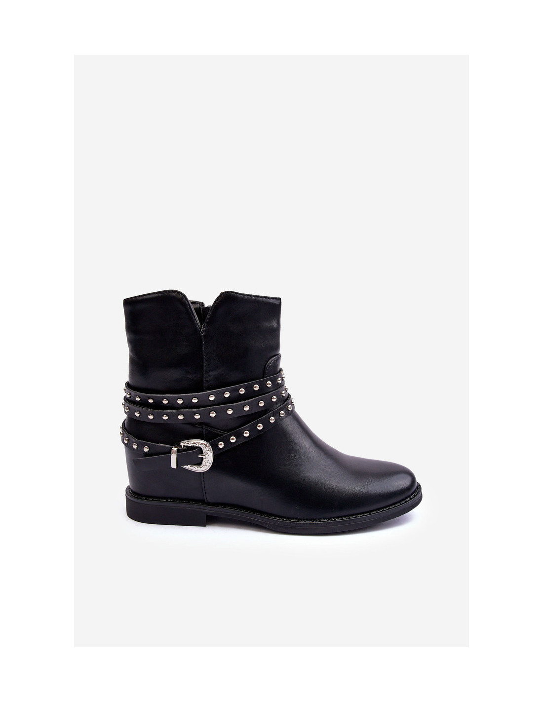 Madingi moteriški batai, pagaminti iš ekologiškos odos. Viršus puoštas petnešėlėmis ir sagtimi. Šis modelis pastatytas ant plokščio kulno. Užsegimas šone užtrauktuku. Apvalūs kojų pirštai. Minkštas vidpadis suteiks patogumo naudojant. Renkantis dydį, vadovaukitės dydžių lentele.