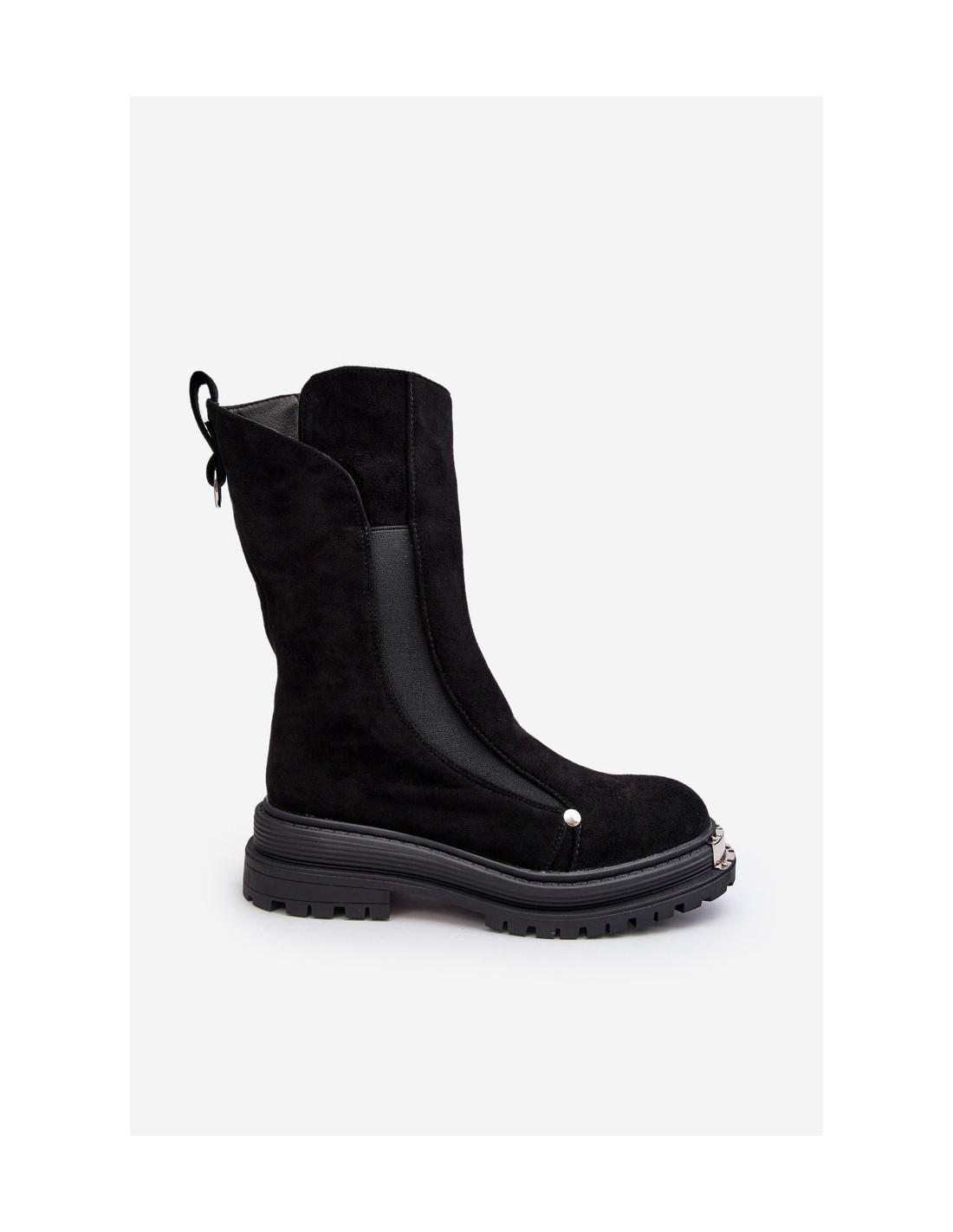 Moteriški batai iš ekologiškos zomšos. Pastatykite ant plokščio, stabilaus kulno ir platformos. Vidus apšiltintas batų antklode. Užsegimas užtrauktuku viršutinės dalies šone. Pirštų dėžutė sutvirtinta. Renkantis dydį, žiūrėkite dydžių lentelę.