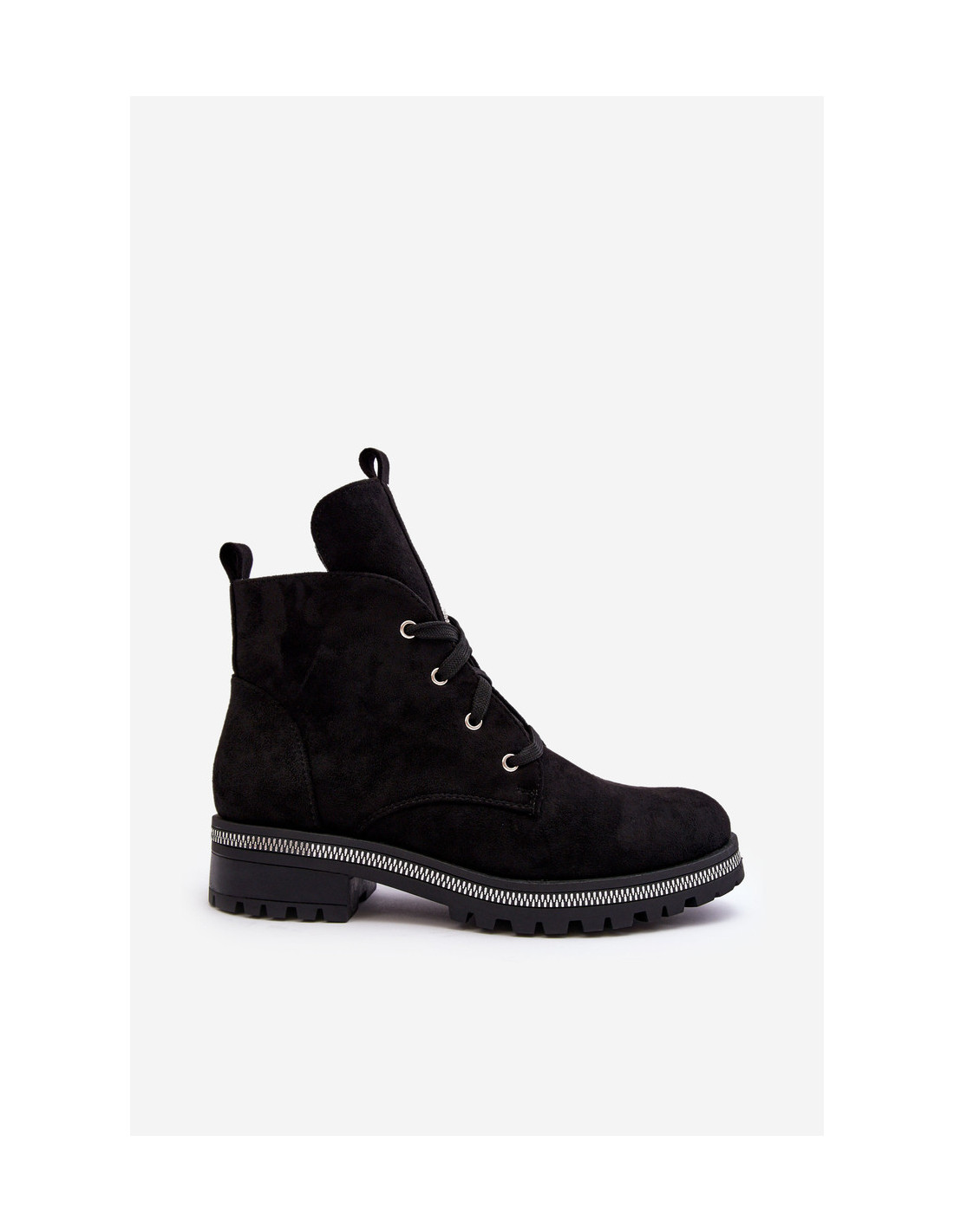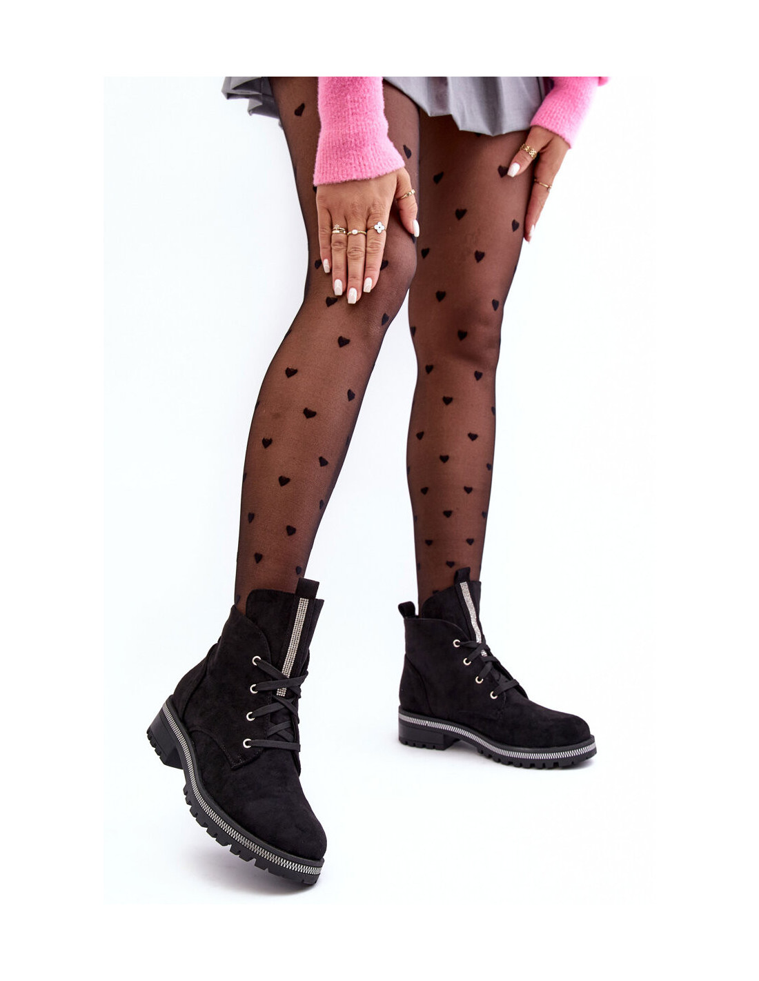 Moteriški batai iš ekologiškos zomšos. Slip-on stiliaus su raišteliu. Apvalūs kojų pirštai. Vidus apšiltintas batų pamušalu. Sutvirtintas kulno skaitiklis. Plokščias kulnas užtikrina stabilumą kiekviename žingsnyje. Maži, blizgūs smeigtukai ant liežuvio. Šį modelį privalote turėti savo drabužių spintoje! Rinkdamiesi dydį, vadovaukitės dydžių lentele.