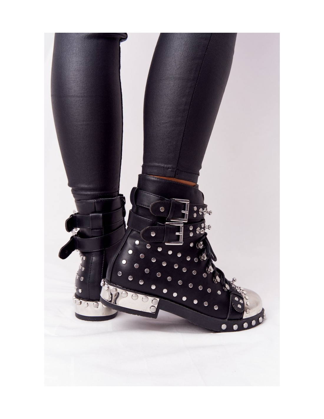 Unikalūs kulkšnies batai su cirkonio akmenimis ir sagtimis. Darbininkai pagaminti iš ekologiškos odos ir apšiltinti batų antklode. Kulkšnies batai puikiai tiks prie glam rock ar grunge stiliaus. Būtinai peržiūrėkite visą mūsų moteriškų kulkšnies batų kolekciją! Renkantis dydį, vadovaukitės dydžių lentele.
