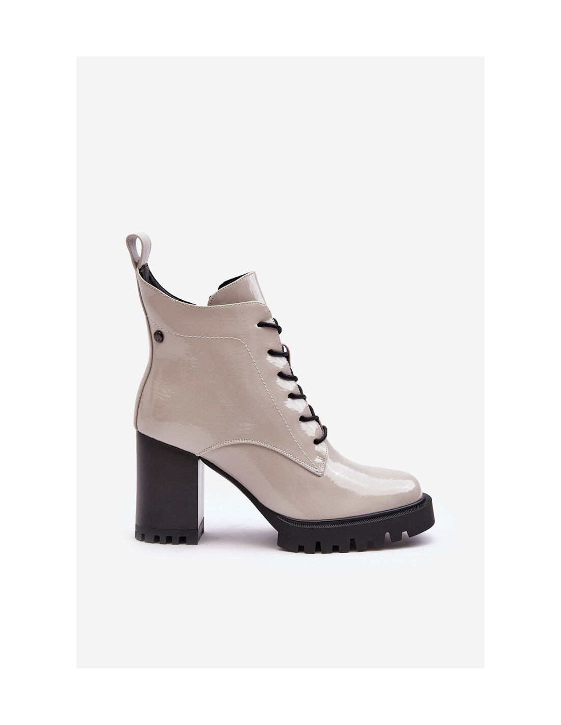 Moteriški kulkšnies batai turi blokinį kulną. Pagaminta iš aukštos kokybės ekologiškos odos. Batai turi užtrauktuką šone ir raištelius, leidžiančius tinkamai priderinti batą prie kojos pločio. Kulno skaitiklis yra standus. Suapvalinta nosis. Vidus apšiltintas batų antklode. Renkantis dydį, vadovaukitės dydžių lentele