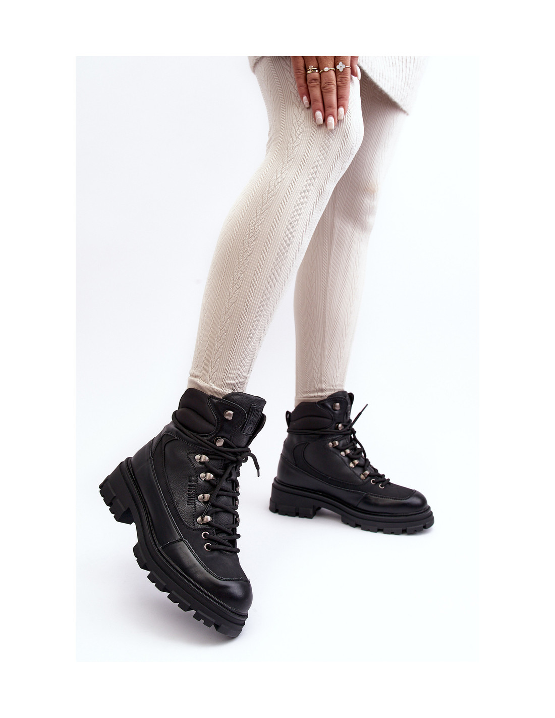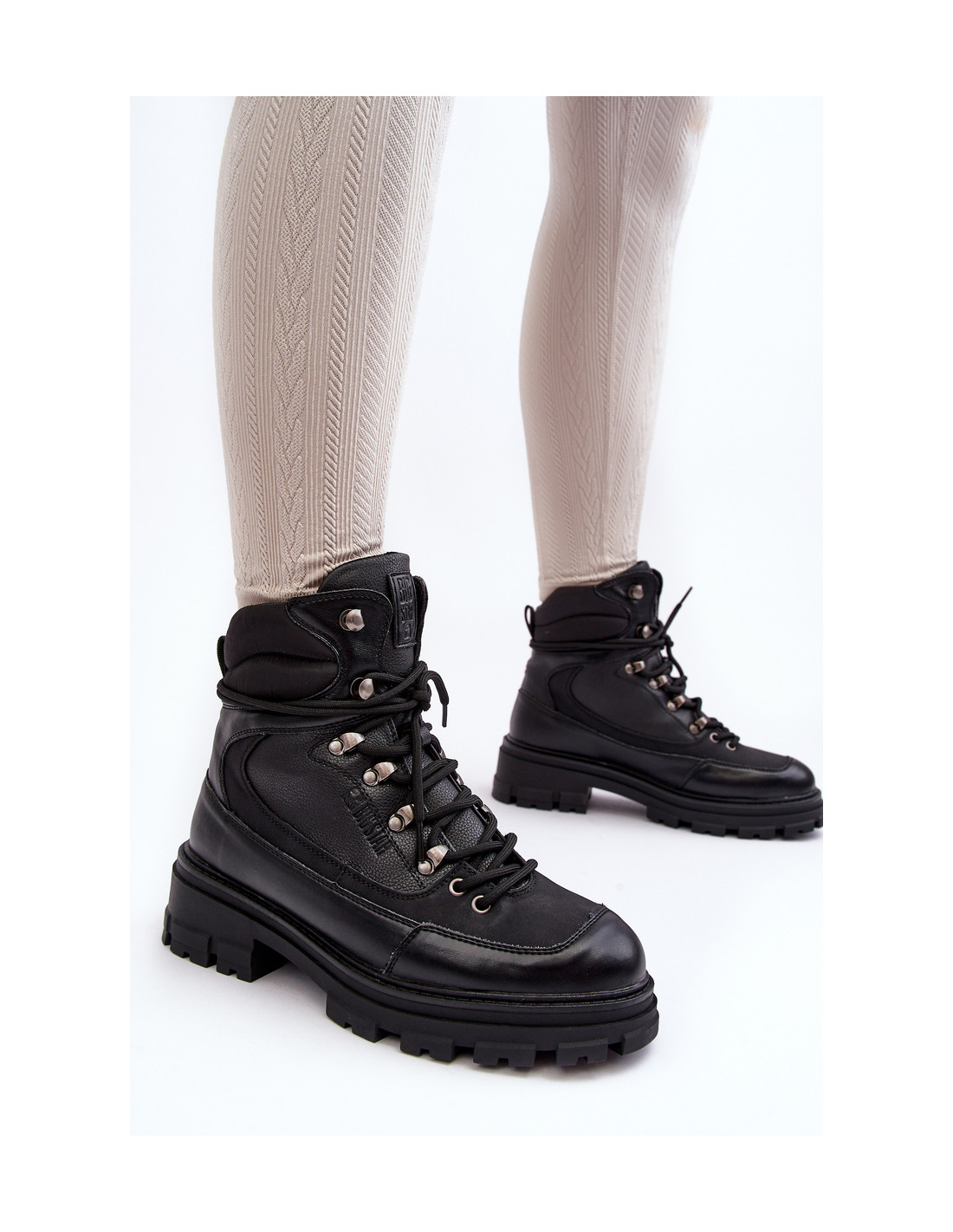 Moteriški Big Star batai yra pagaminti iš eko odos. Rinkinys ant plokščio kulno ir platformos iš guminės medžiagos. Klasikinis suvarstomas modelis. Vidus apšiltintas batų antklode. Kulno skaitiklis yra standus. Suapvalinti kojų pirštai. Renkantis dydį, vadovaukitės dydžių lentele.