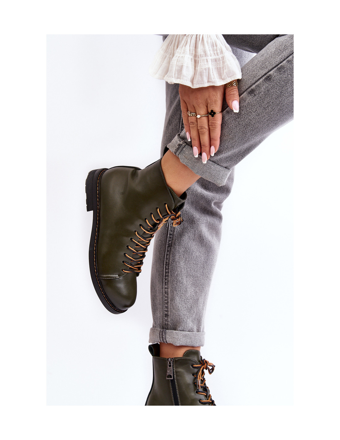 Patogūs moteriški batai pagaminti iš eko odos. Jie turi užtrauktuką viršutinės dalies šone ir papildomus raištelius. Šis modelis turi plokščią kulną. Šios avalynės kulno skaitiklis yra standesnis. Jie buvo izoliuoti batų antklode. Šie batai puikiai tiks prie rudens ir žiemos stiliaus! Renkantis dydį, vadovaukitės dydžių lentele.