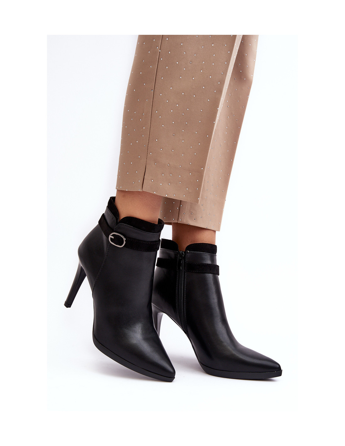 Moteriški batai iš eko odos. Užsegamas užtrauktuku šone. Pastatykite ant aukštakulnio. Smailūs pirštai optiškai lieknins kojas. Viršus puoštas plonu dirželiu su sagtimi. Jų viduje yra izoliacija – batų antklodė ir standus kulnas. Puikus modelis daugeliui stilių! Jūs privalote juos turėti! Renkantis dydį, vadovaukitės dydžių lentele.