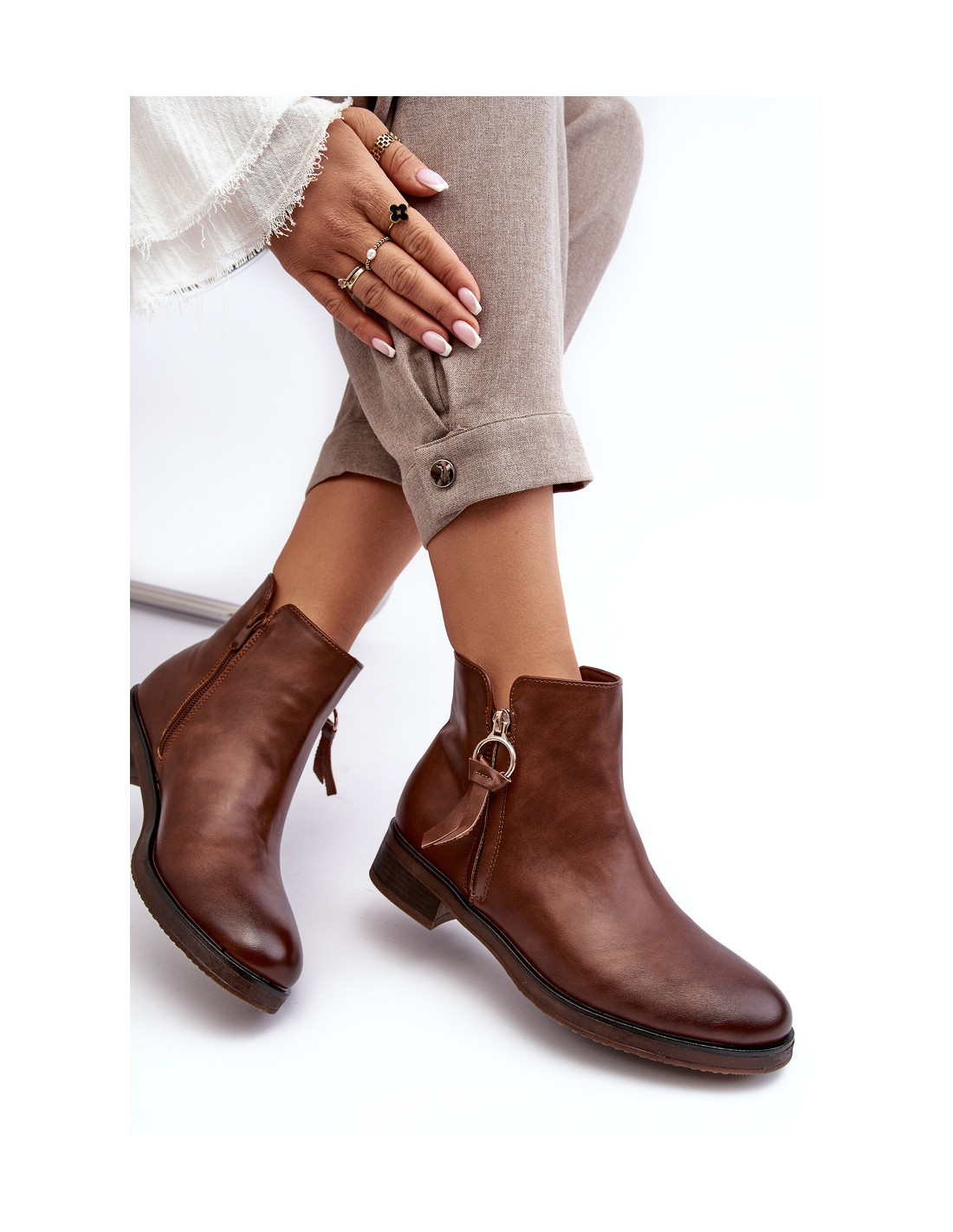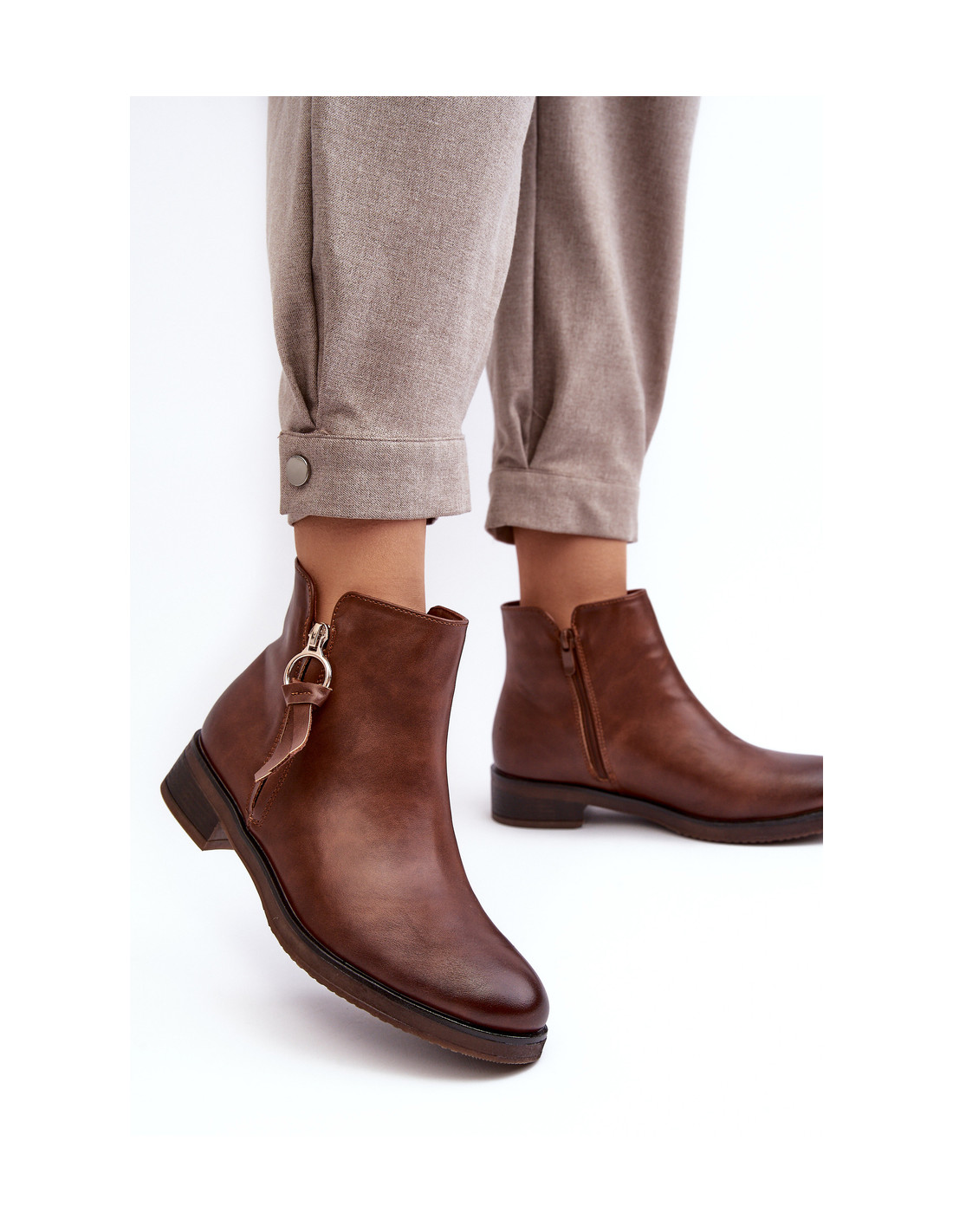 Moteriški batai iš eko odos. Nustatykite ant plokščio kulno. Viršutinė dalis vidinėje pusėje užsegama užtrauktuku, o antrasis užtrauktukas dekoratyvus. Vidus apšiltintas gražia batų antklode. Šis modelis papildomai turi standintą kulną. Jūs tikrai turėtumėte juos turėti! Renkantis dydį, vadovaukitės dydžių lentele.