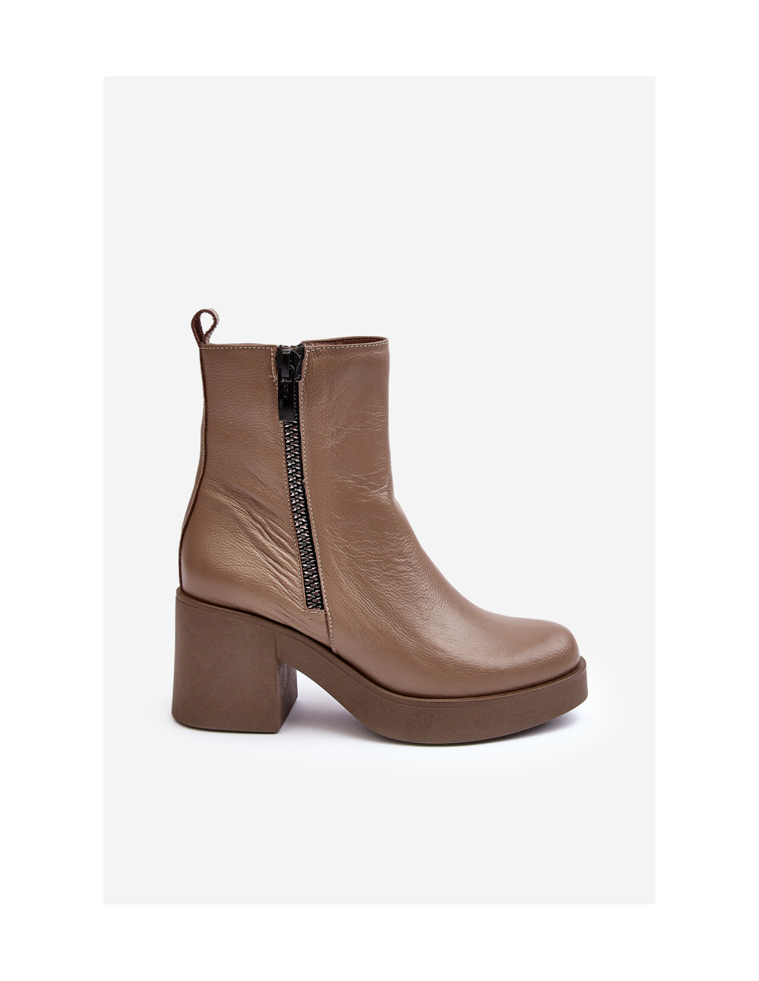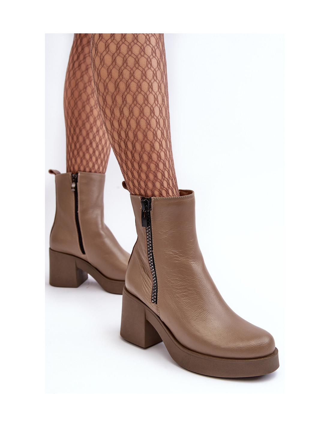 Moteriški kulkšnies batai su masyviu blokiniu kulnu ir platforma. Pagaminta iš natūralios odos. Užsegamas užtrauktuku vidinėje viršutinės dalies pusėje. Vidus apšiltintas batų antklode. Padas neslidus. Kulkšnies batai puikiai tinka rudens stiliui. Renkantis dydį, vadovaukitės dydžių lentele