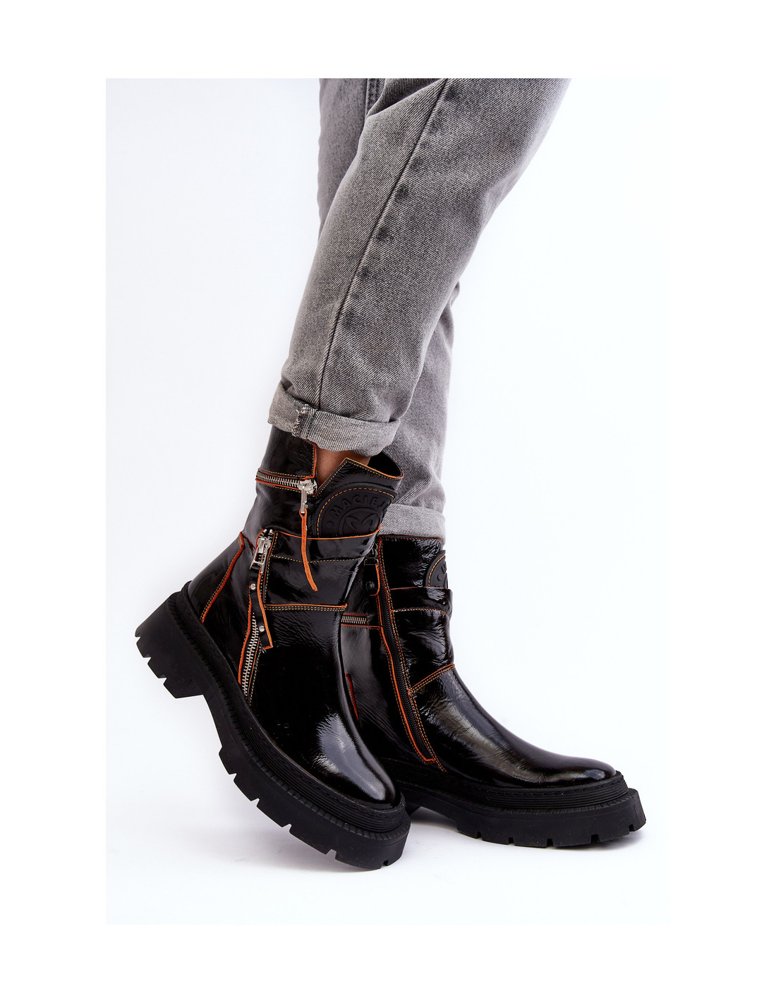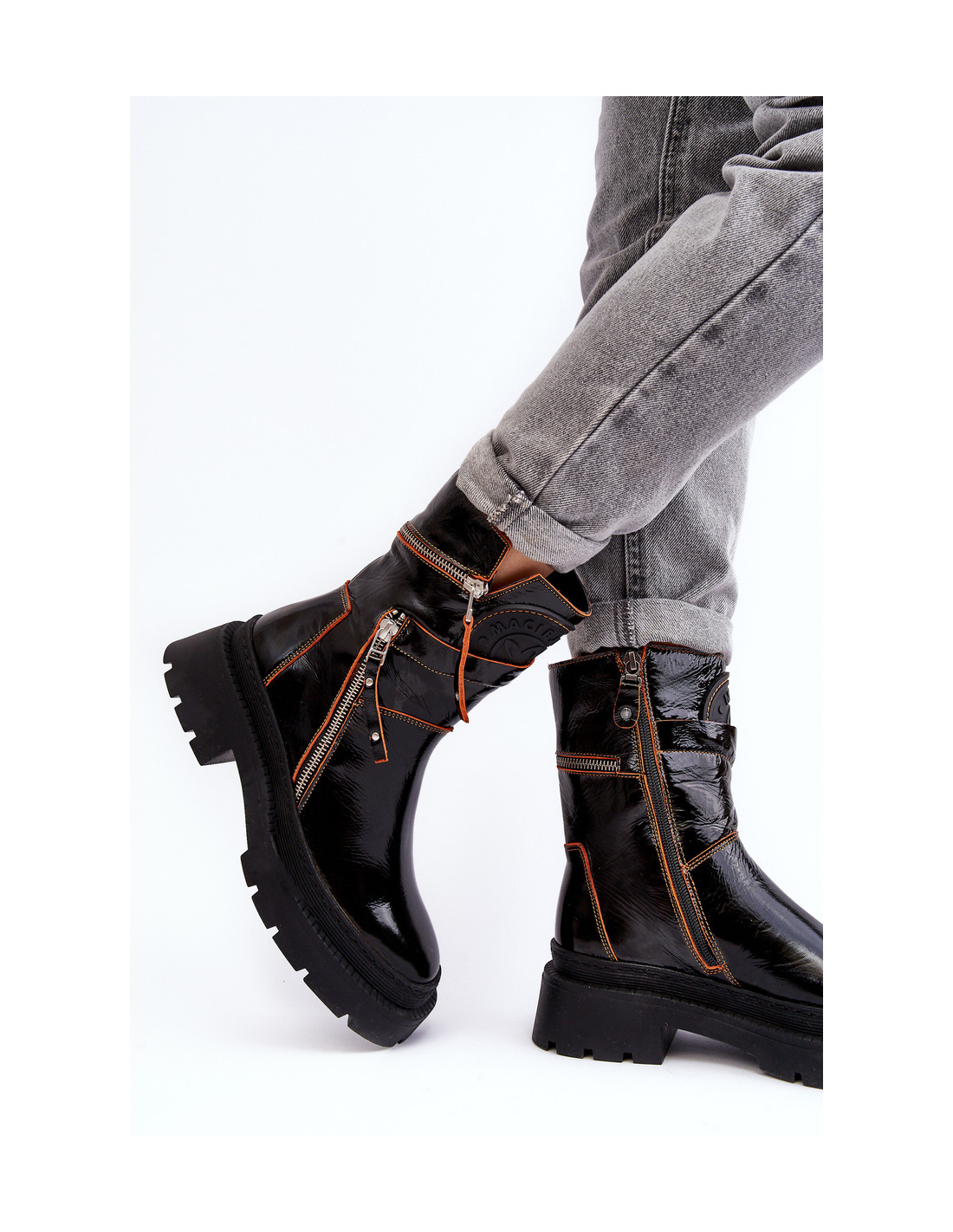Moteriški Maciejka batai yra pagaminti iš aukštos kokybės natūralios odos. Plokščias kulnas ir platforma užtikrina stabilumą kiekviename žingsnyje. Viršus dekoruotas siūlėmis ir užtrauktukais. Vidus apšiltintas batų antklode. Suapvalinti kojų pirštai. Sutvirtintas kulnas. Būtinai peržiūrėkite kitus mūsų modelius! Renkantis dydį, vadovaukitės dydžių lentele.