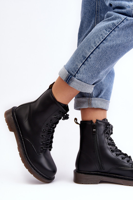 Klasikiniai moteriški batai yra pagaminti iš eko odos. Pastatas ant plokščio kulno ir neslidaus pado. Suvarstomas modelis su papildomu užtrauktuku. Suapvalinti kojų pirštai. Sutvirtintas kulnas. Trappers neturi izoliacijos. Šis klasikinis modelis turėtų būti jūsų garderobe! Renkantis dydį, vadovaukitės dydžių lentele.