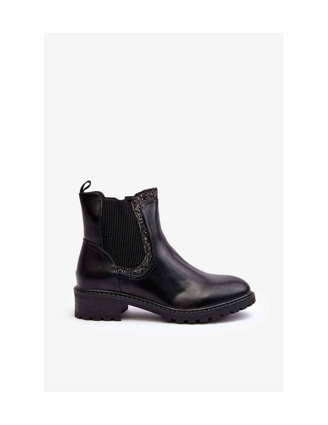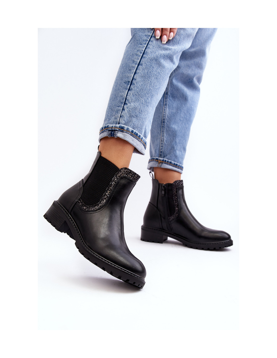 Moteriški kulkšnies batai. Pagaminta iš eko odos. Statomas ant plokščio, stabilaus kulno. Užsegamas užtrauktuku šone. Viršus puoštas blizgučiais. Suapvalinti kojų pirštai. Sutvirtintas kulnas. Šis klasikinis modelis gali būti priderintas prie daugelio rudens ir žiemos stilių! Renkantis dydį, vadovaukitės dydžių lentele.
