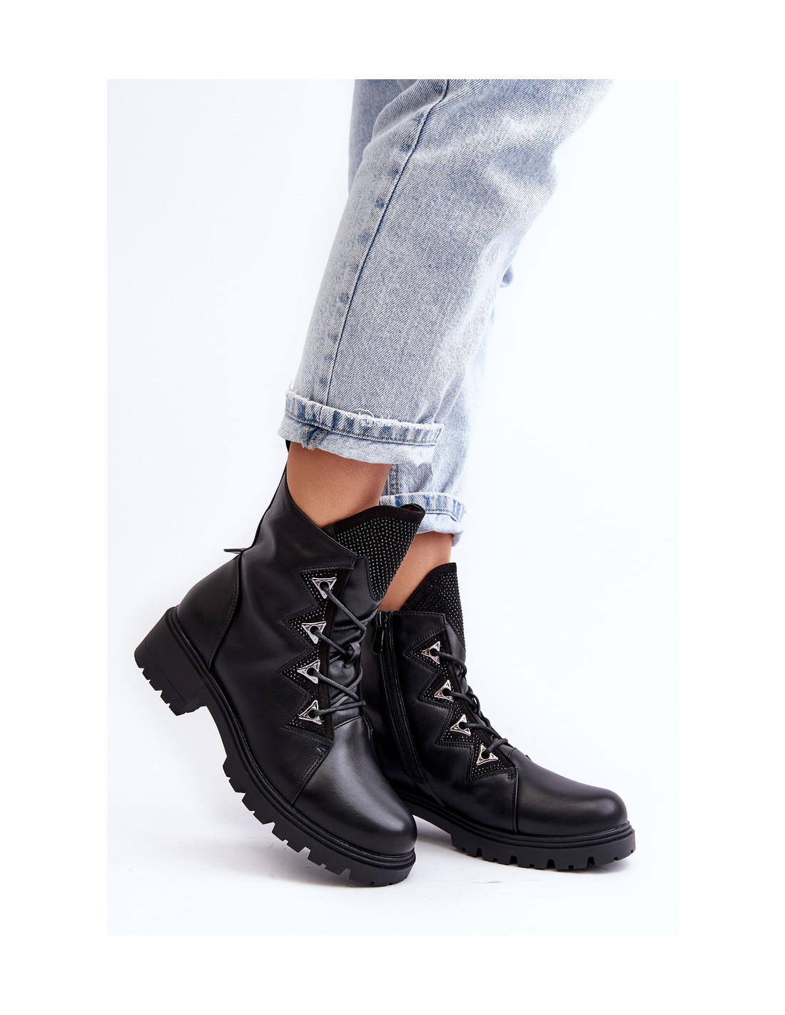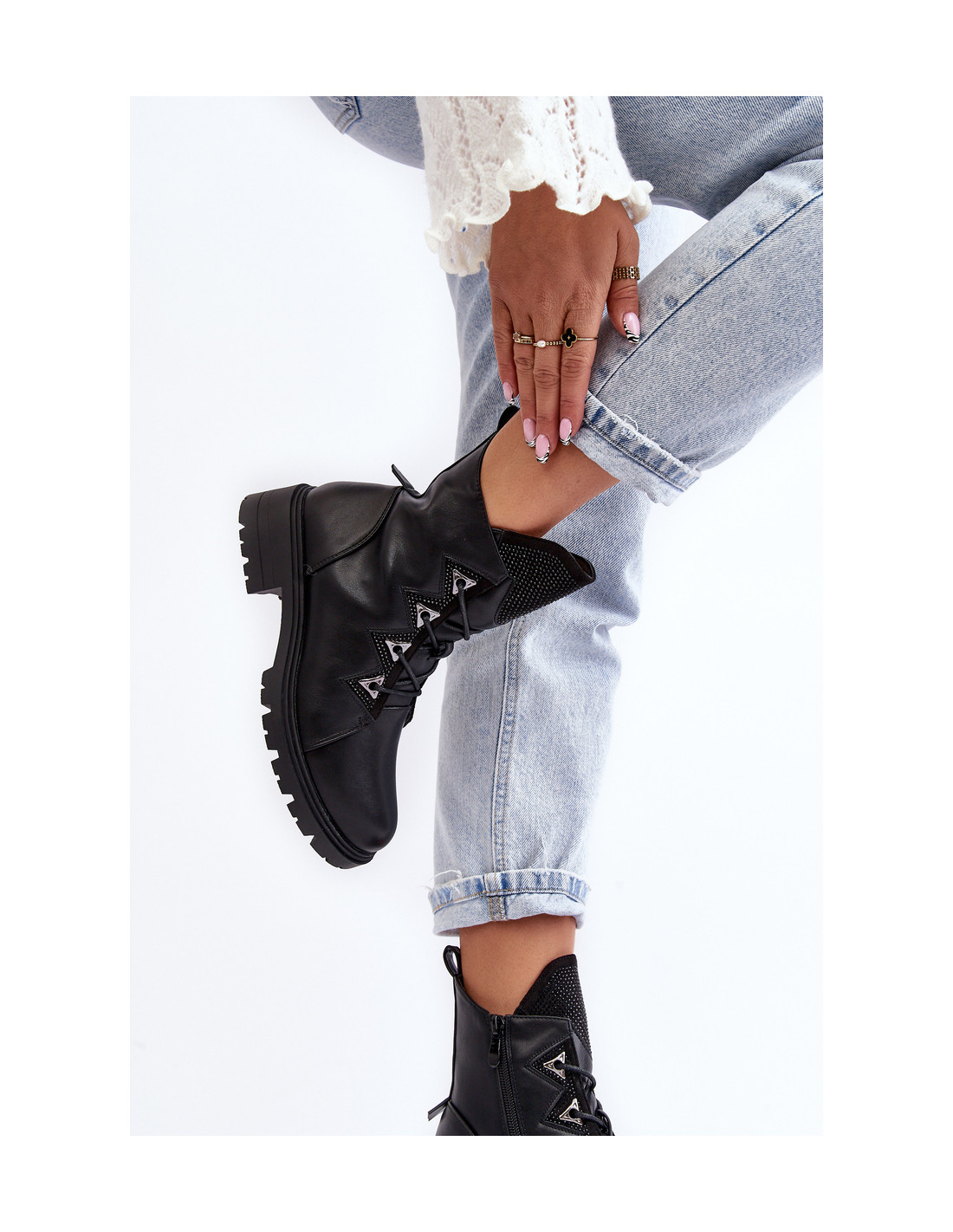 Moteriški kulkšnies batai – puikus pasirinkimas pereinamajam sezonui. Šie batai yra pagaminti iš lakinės eko odos. Jie turi purkštukus ant raištelių ir liežuvio. Be to, kulno skaitiklis yra standesnis. Šis modelis turi izoliaciją batų antklodės pavidalu. Batai plokščiu kulnu ir platforma su grioveliais. Šis modelis turėtų būti jūsų! Renkantis dydį, vadovaukitės dydžių lentele.