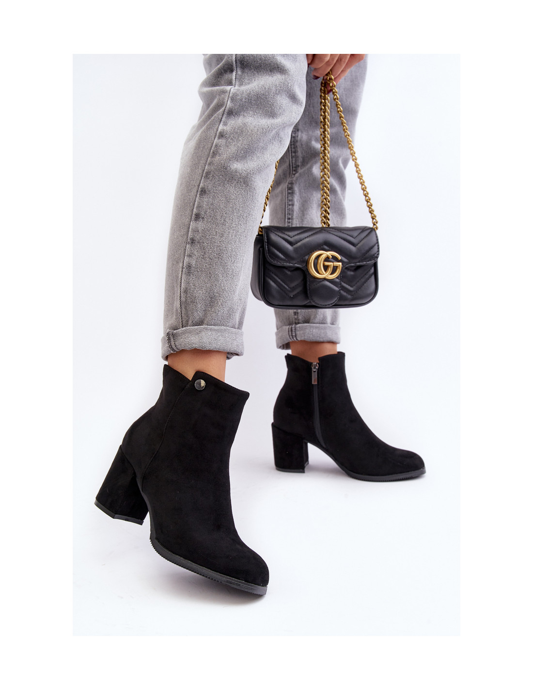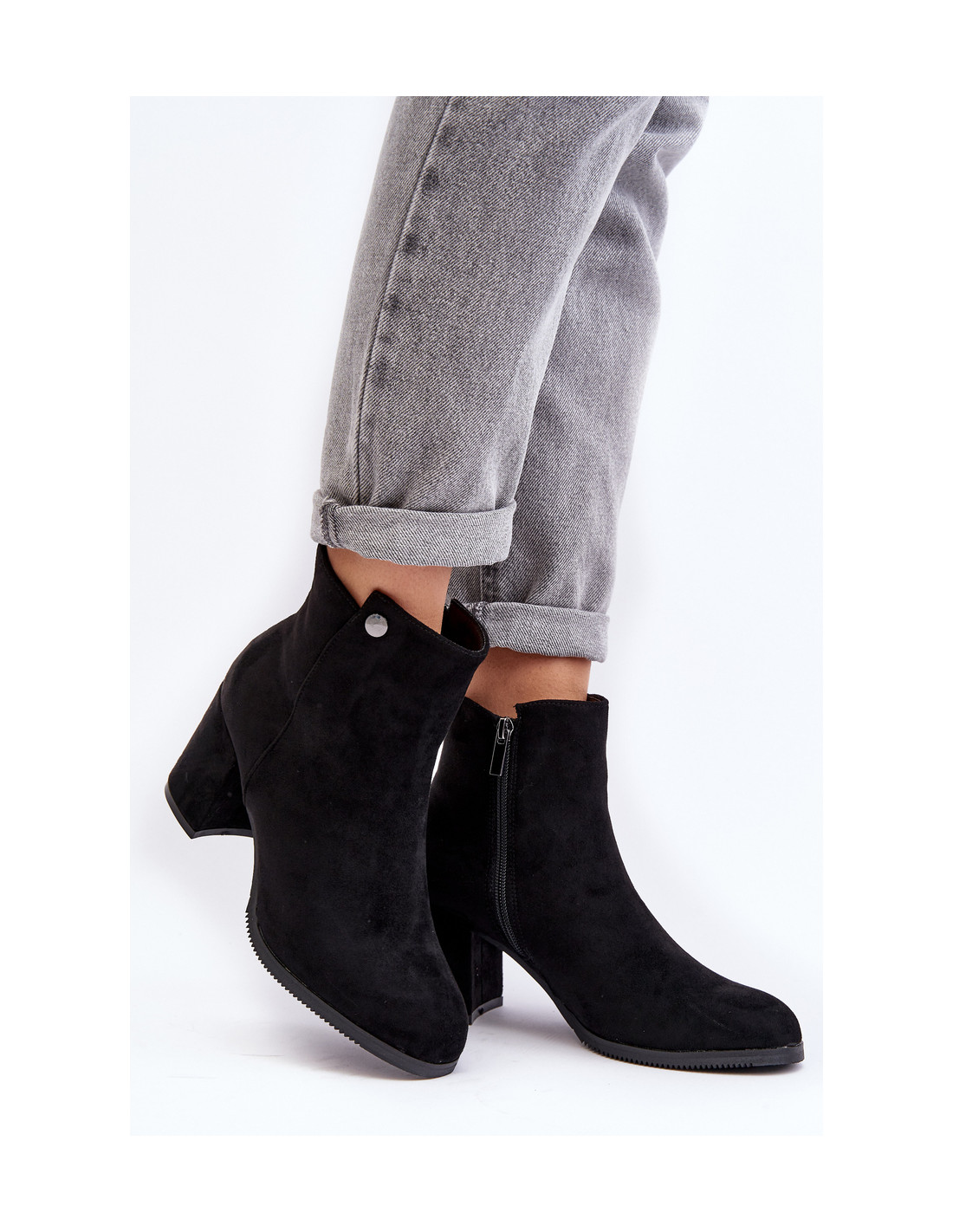 Zomšiniai moteriški kulkšnies batai ant aukštakulnio juodo Selela