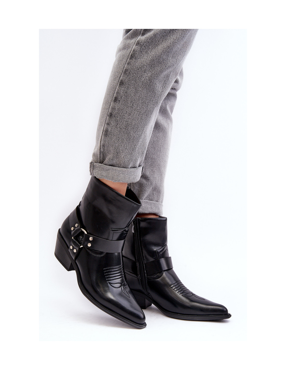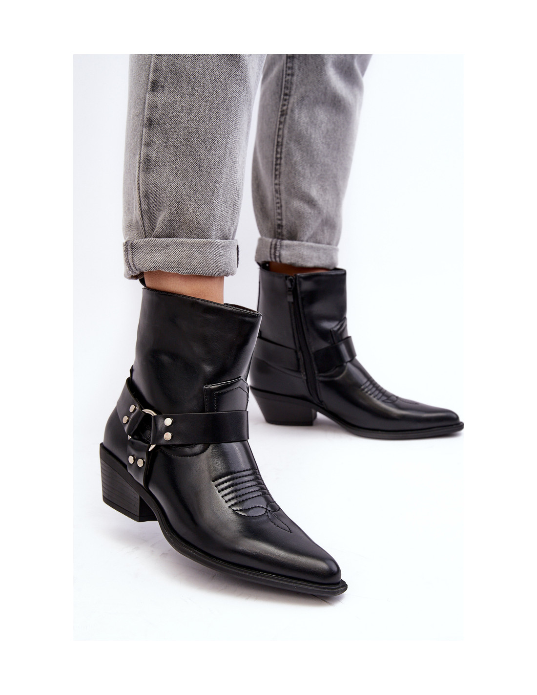 Kaubojiški batai – tai stilinga ir praktiška avalynė, kurią galima naudoti įvairių stilių! Pagaminta iš eko odos. Nustatykite ant žemo kulno. Smailūs pirštai optiškai lieknins kojas. Viršus dekoruotas siūlėmis ir sujungtais dirželiais. Vidus apšiltintas batų antklode. Jūs privalote juos turėti! Renkantis dydį, vadovaukitės dydžių lentele.