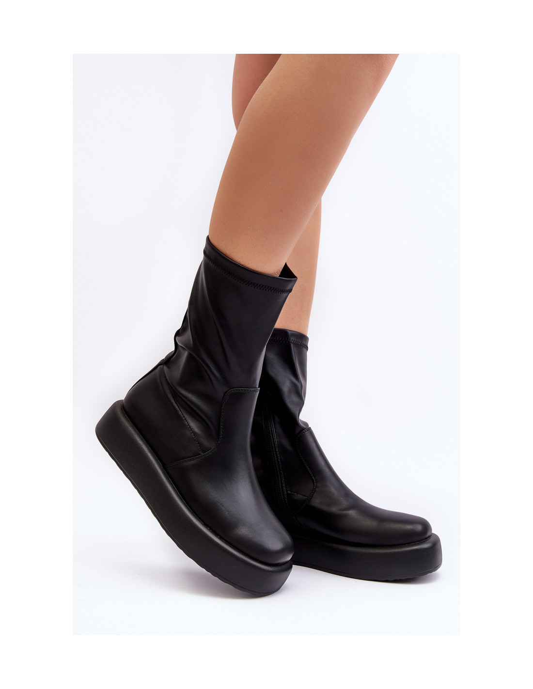 Moteriški batai su platforma, ekologiška oda, juoda Algedi