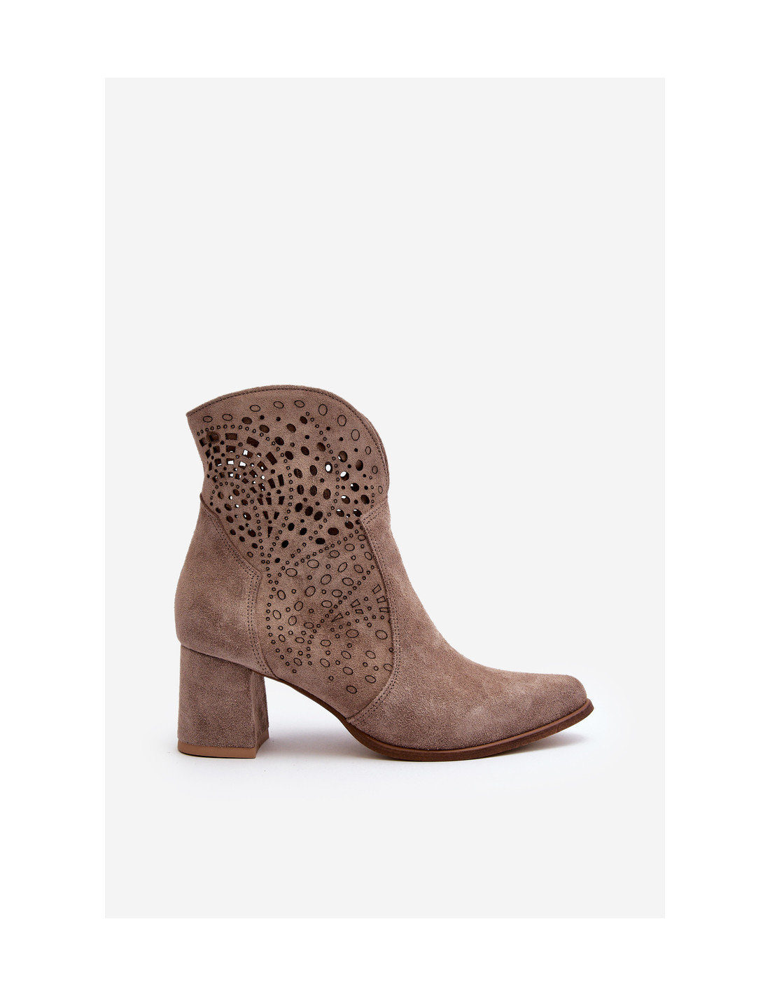 Moteriški aukštakulniai batai yra pagaminti iš natūralios zomšos. Dėl ažūrinio rašto ir kulno jie dera su daugeliu stilių. Užsegamas užtrauktuku. Minkštas, itin patogus vidpadis užtikrins komfortą naudojimo metu. Jūs tikrai turėtumėte juos turėti! Renkantis dydį, vadovaukitės dydžių lentele.