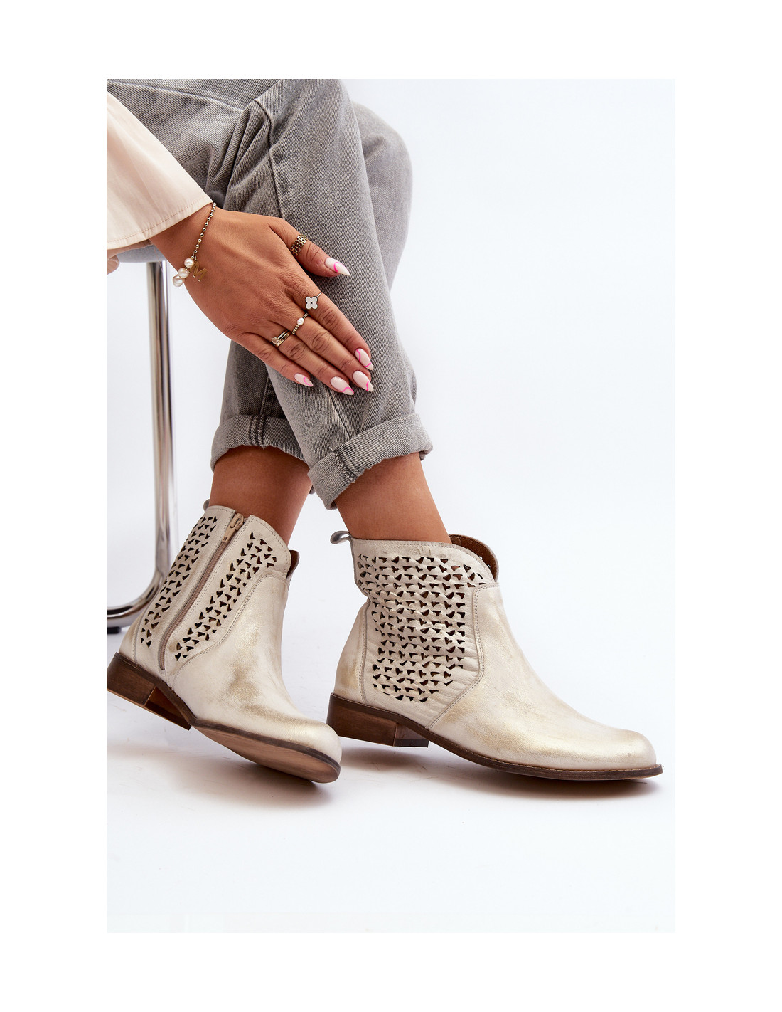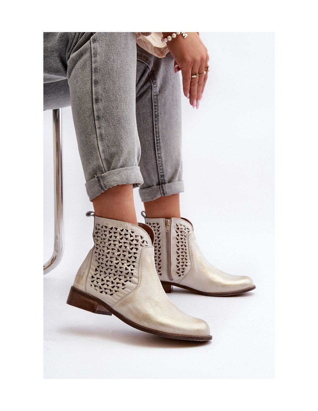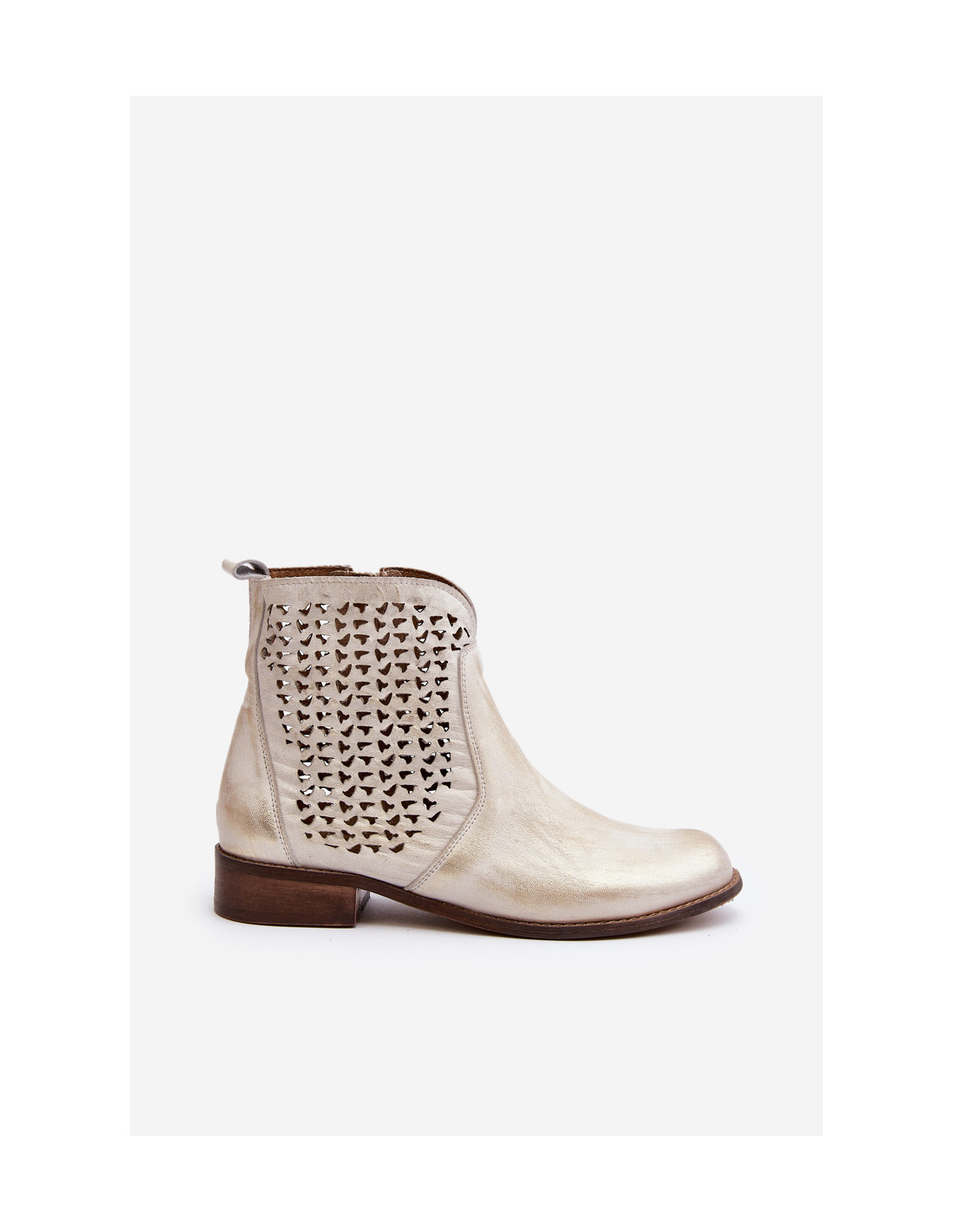 Batai pagaminti iš natūralios odos. Apsivilkti lengviau dėl šone įsiūto užtrauktuko. Batai turi ažūrinį raštą. Jie turi plokščią kulną ir patogų vidpadį iš natūralios odos. Šis itin patogus modelis turi būti jūsų garderobe! Renkantis dydį, vadovaukitės dydžių lentele.