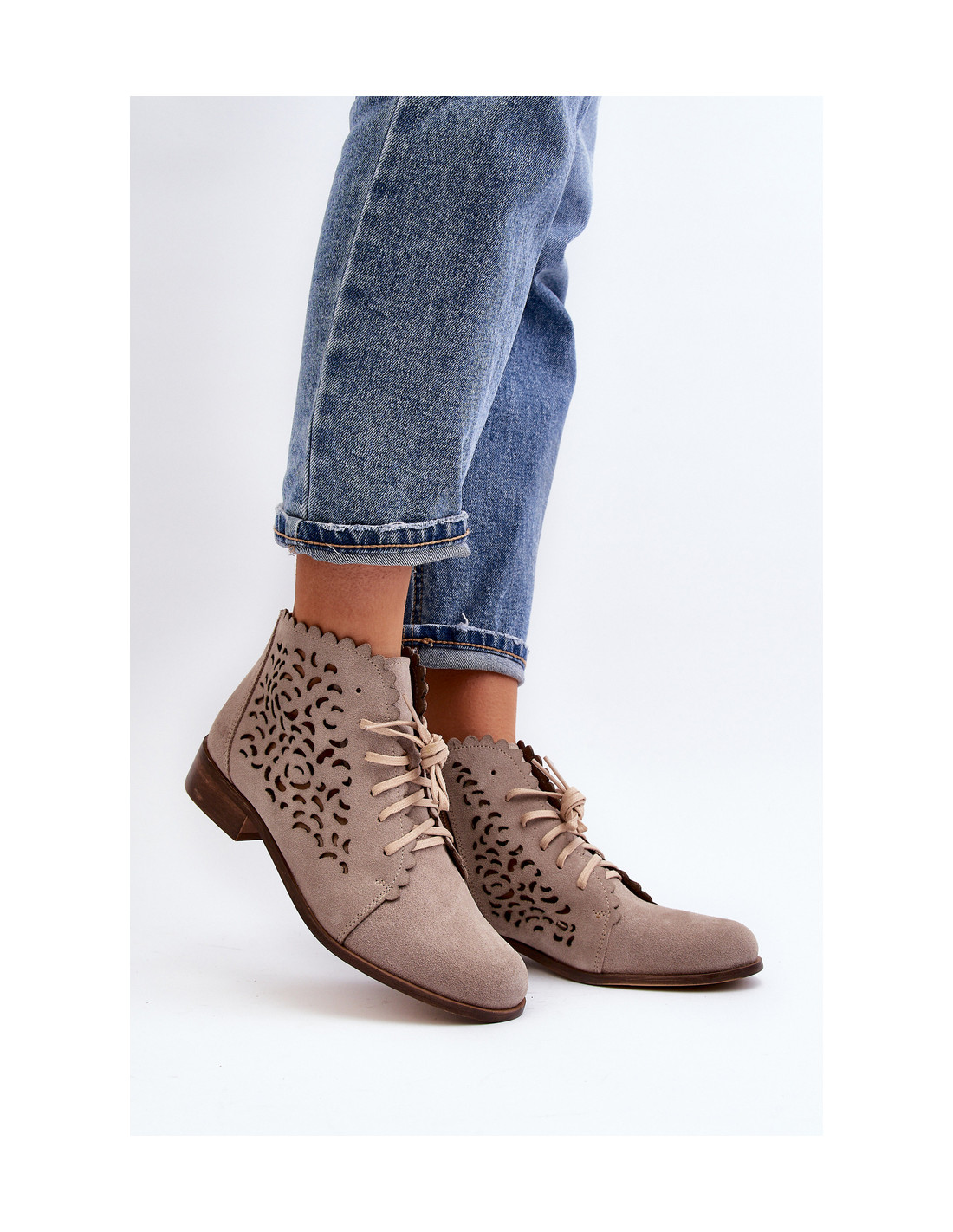 Zazoo 2871 moteriški ažūriniai suvarstomi kulkšnies batai, smėlio spalvos