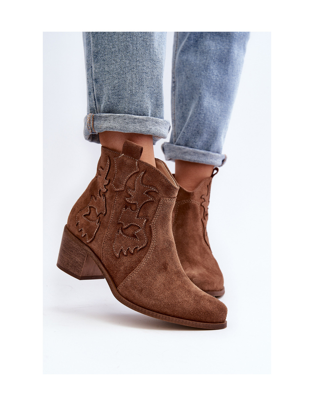 Zazoo 3426 Moterų zomšiniai kaubojiški batai rudos spalvos