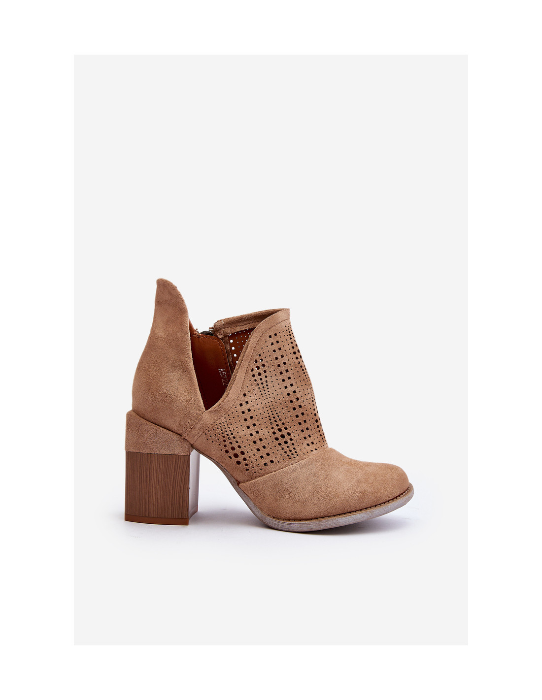 Moteriški batai iš ekologiškos zomšos. Viršus puoštas ažūriniu raštu ir iškarpa. Užsegamas užtrauktuku. Suapvalinti kojų pirštai. Masyvus plataus stulpelio formos kulnas užtikrins stabilumą kiekviename žingsnyje. Be to, šis modelis turi standintą kulną. Puikiai tinka prie kelnių ir suknelių! Renkantis dydį, vadovaukitės dydžių lentele.
